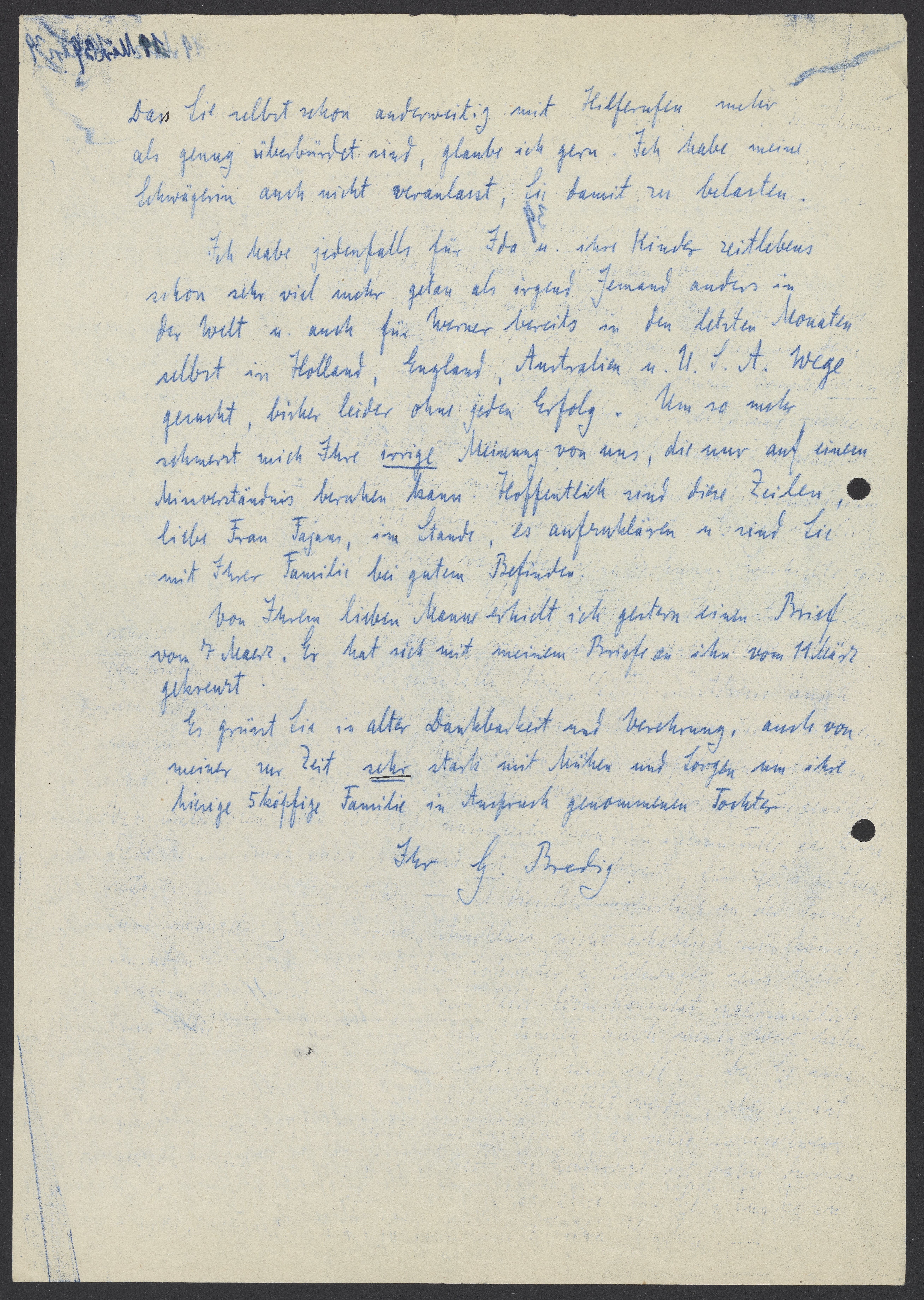 Letter from Georg Bredig to Salomea Fajans, March 19, 1939