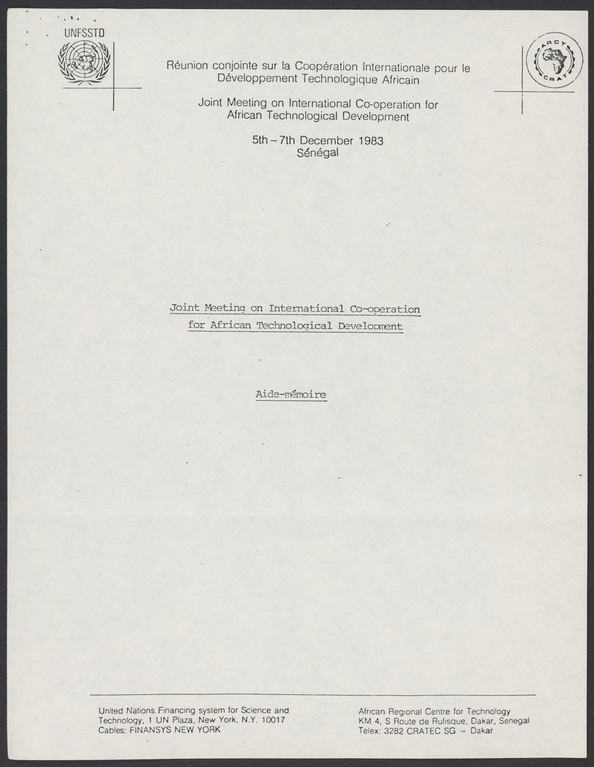 Aide-mémoire on the Joint Meeting on International Co-operation for African Technological Development