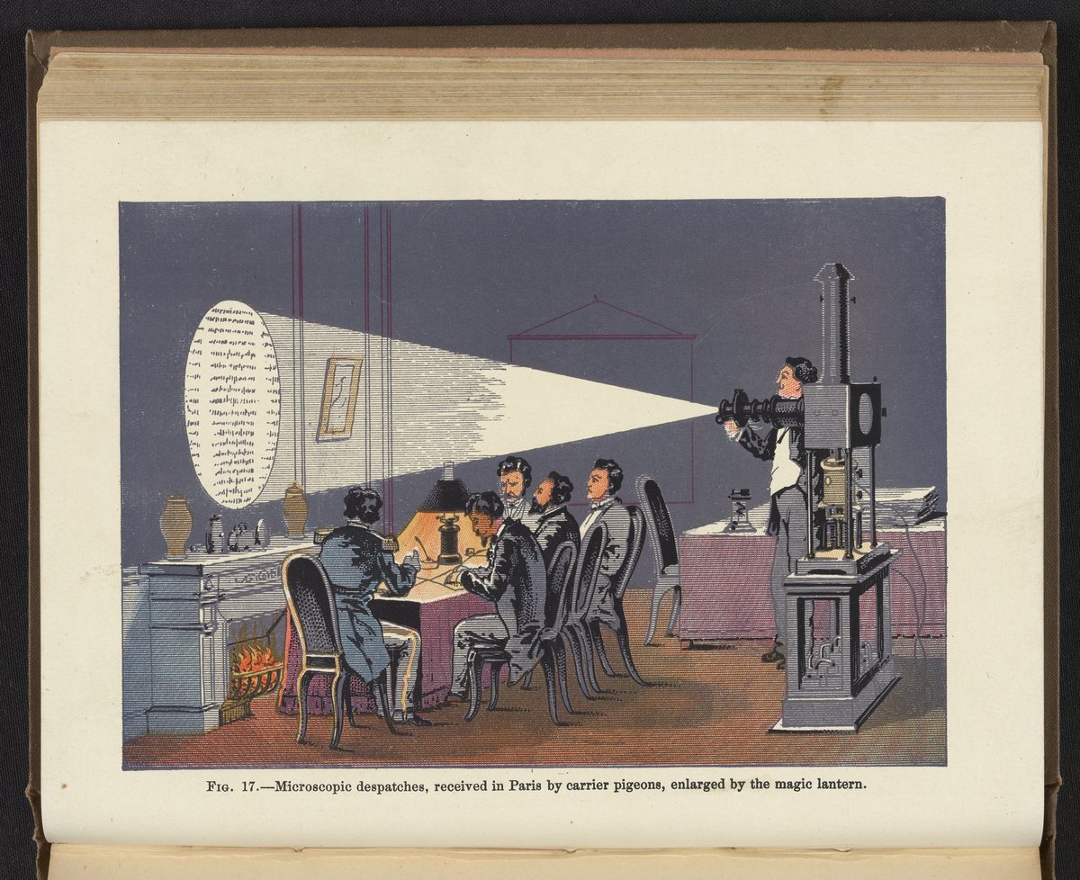Figure 17: Microscopic dispatches, received in Paris by carrier pigeons, enlarged by the magic lantern