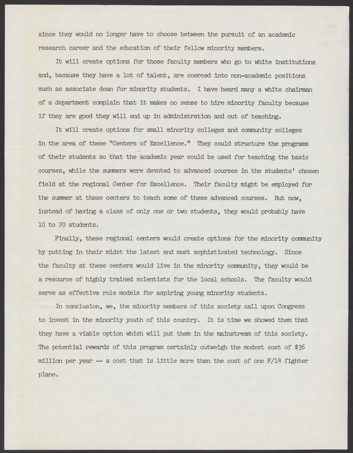 Letter regarding NOBCChE's testimony to the United States Senate, 1976
