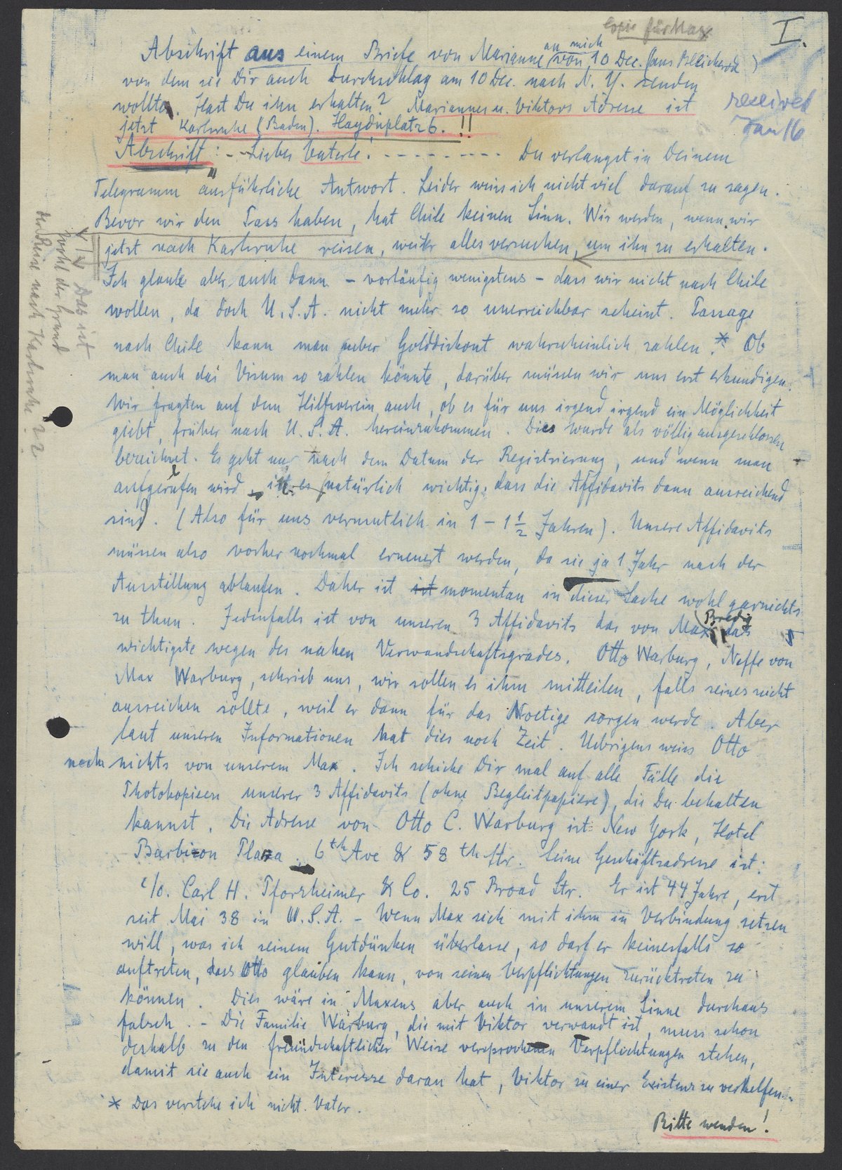 Letter from Georg Bredig to Max Bredig, January 16, 1940