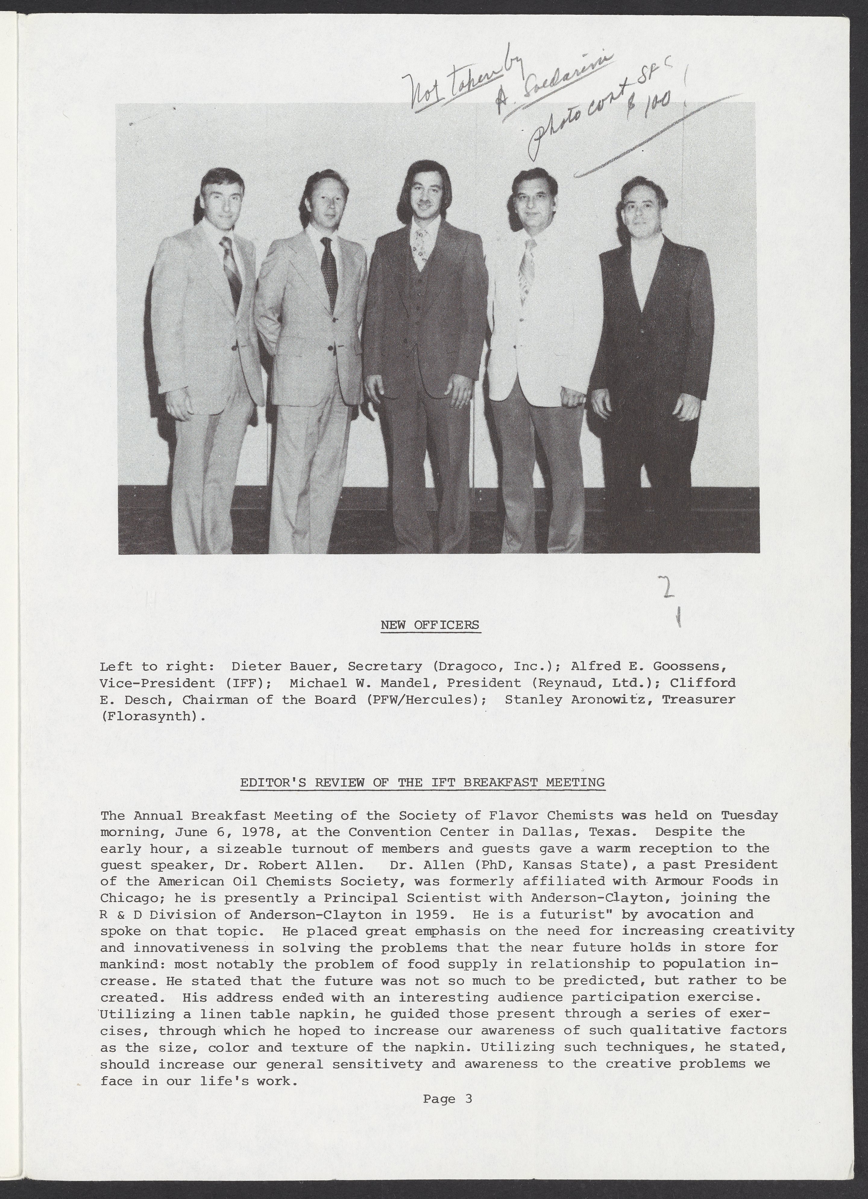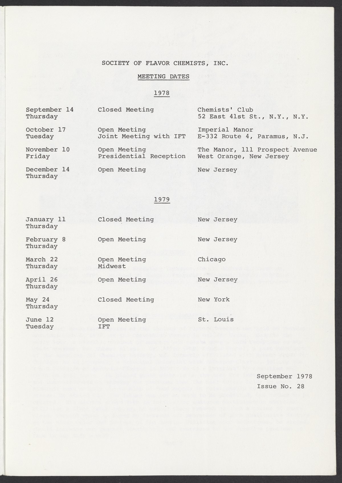Society of Flavor Chemists. “Society of Flavor Chemists Newsletter, September 1978,” September 1978. Society of Flavor Chemists Newsletters and Certificate of Incorporation, Box 1, Folder 1. Science History Institute. Philadelphia. https://digital.sciencehistory.org/works/cxao0gd.
