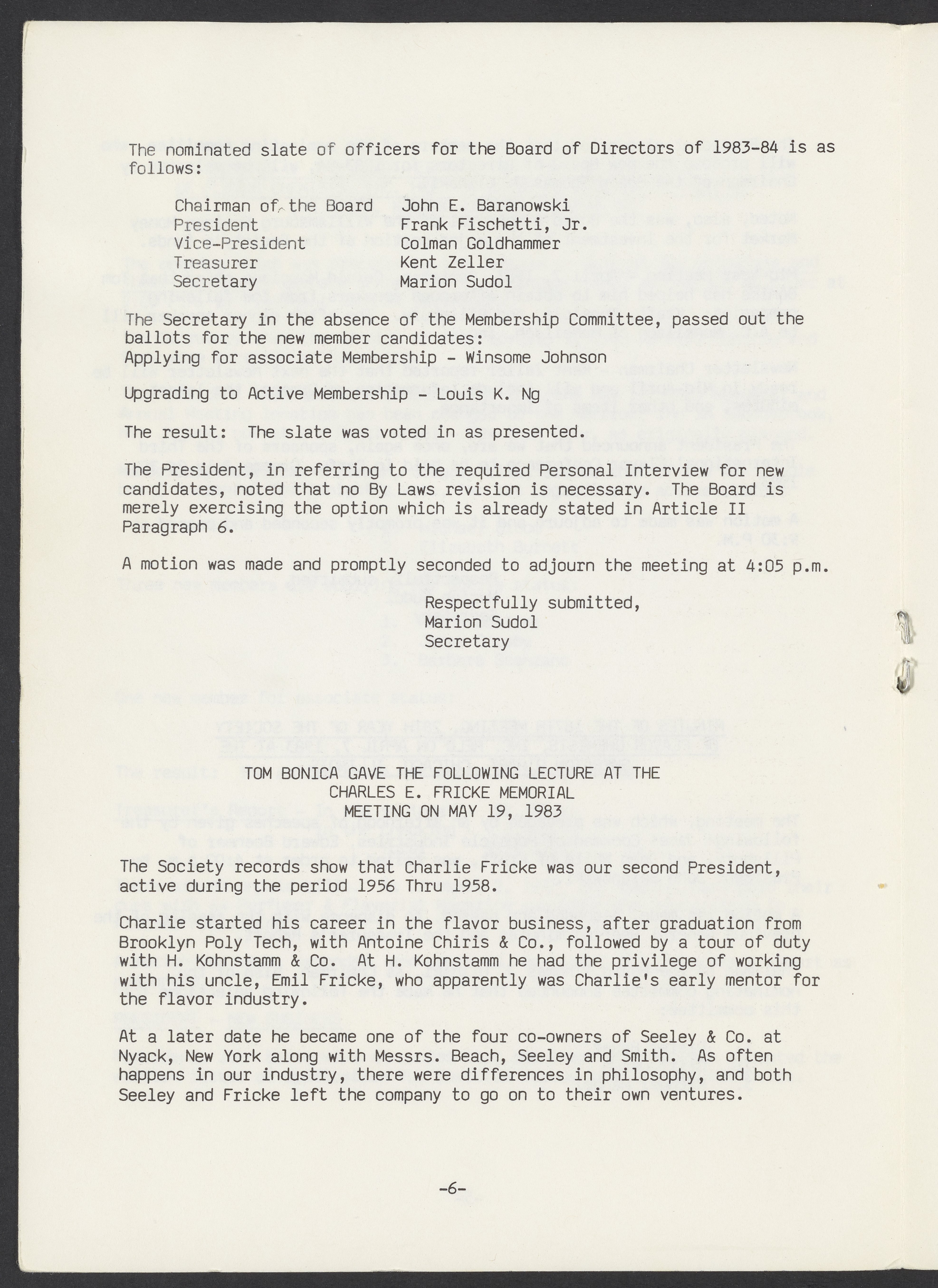 Society of Flavor Chemists. “Society of Flavor Chemists Newsletter, July 1983,” July 29, 1983. Society of Flavor Chemists Newsletters , Box 1, Folder 1. Science History Institute. Philadelphia. https://digital.sciencehistory.org/works/cxwpxxg.