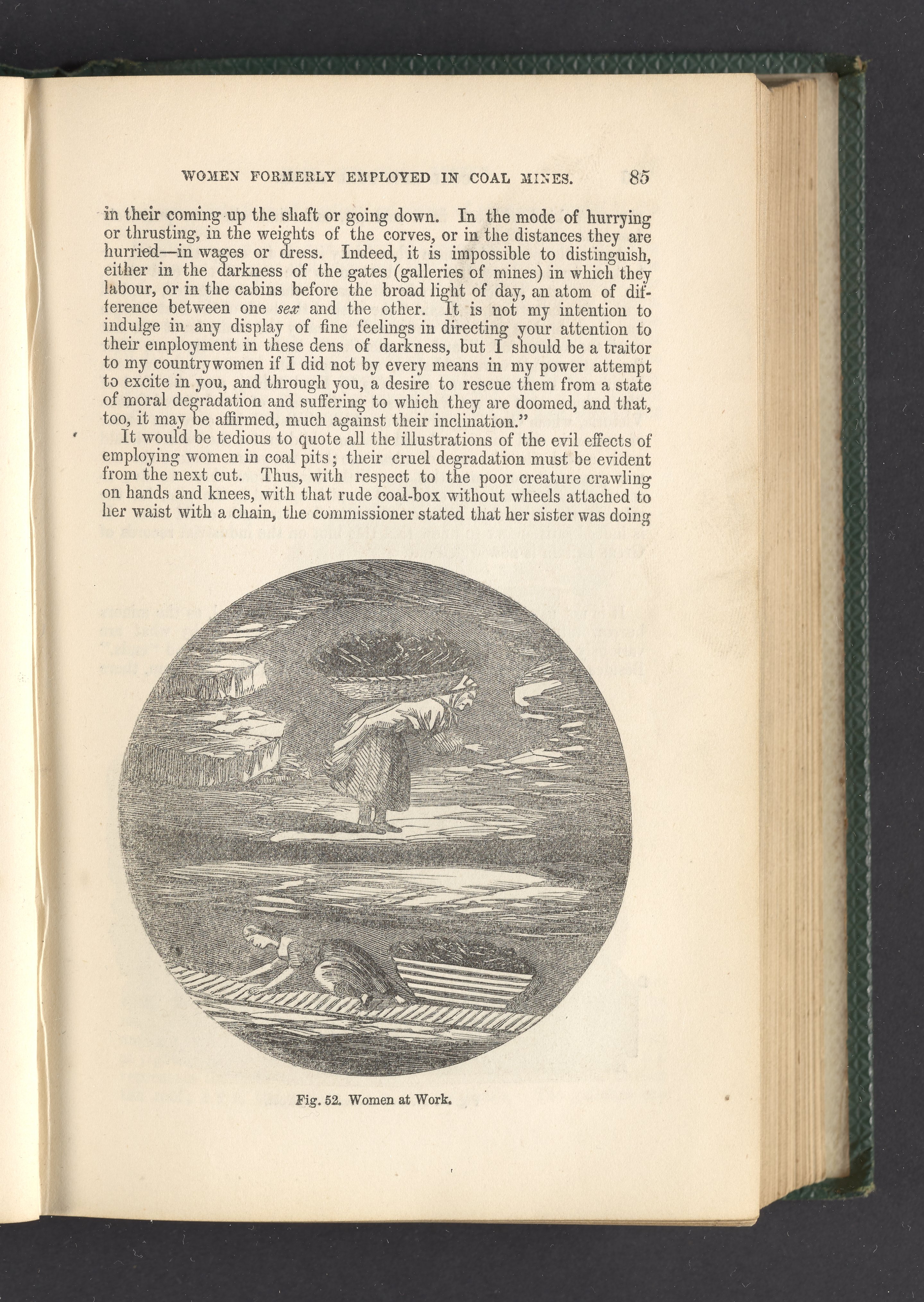 Pepper, John Henry. “Figure 52. Women at Work.” The Playbook of Metals : Including Personal Narratives of Visits to Coal, Lead, Copper, and Tin Mines; with a Large Number of Interesting Experiments Relating to Alchemy and the Chemistry of Fifty Metallic Elements. London, England, 1862. https://digital.sciencehistory.org/works/cyed8k1.