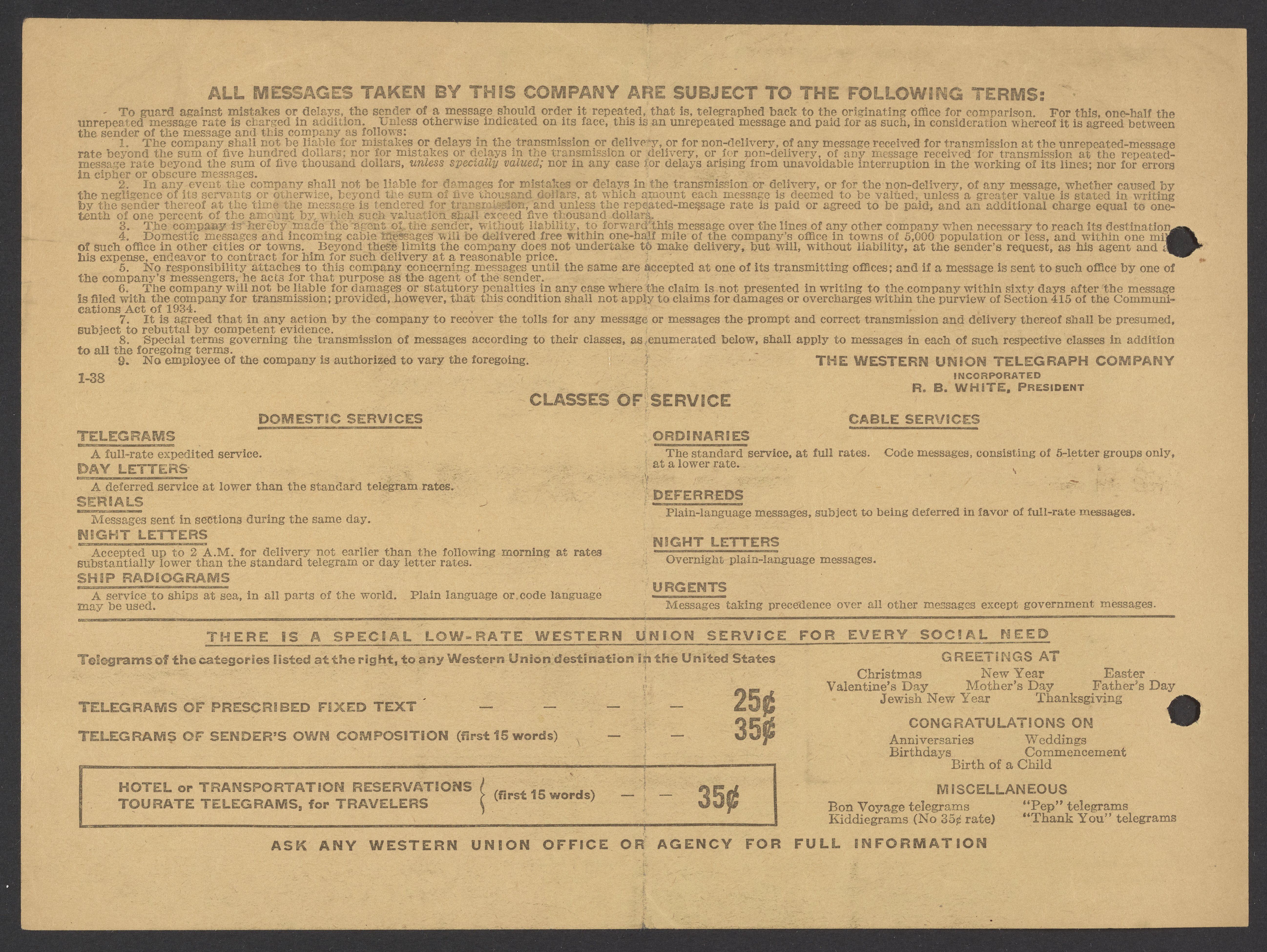 Telegram from Max Bredig to Georg Bredig, November 19, 1939