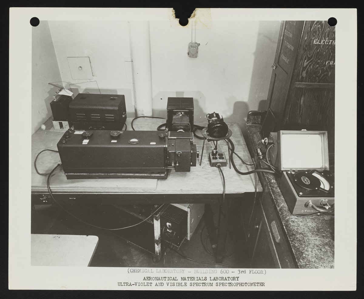 Naval Air Material Center, and United States. Navy. “Ultra-Violet and Visible Spectrum Spectrophotometer,” circa 1958. Photographs from the Papers of J. Hartley Bowen, Box 1. Science History Institute. Philadelphia. https://digital.sciencehistory.org/works/cz30ps73b.