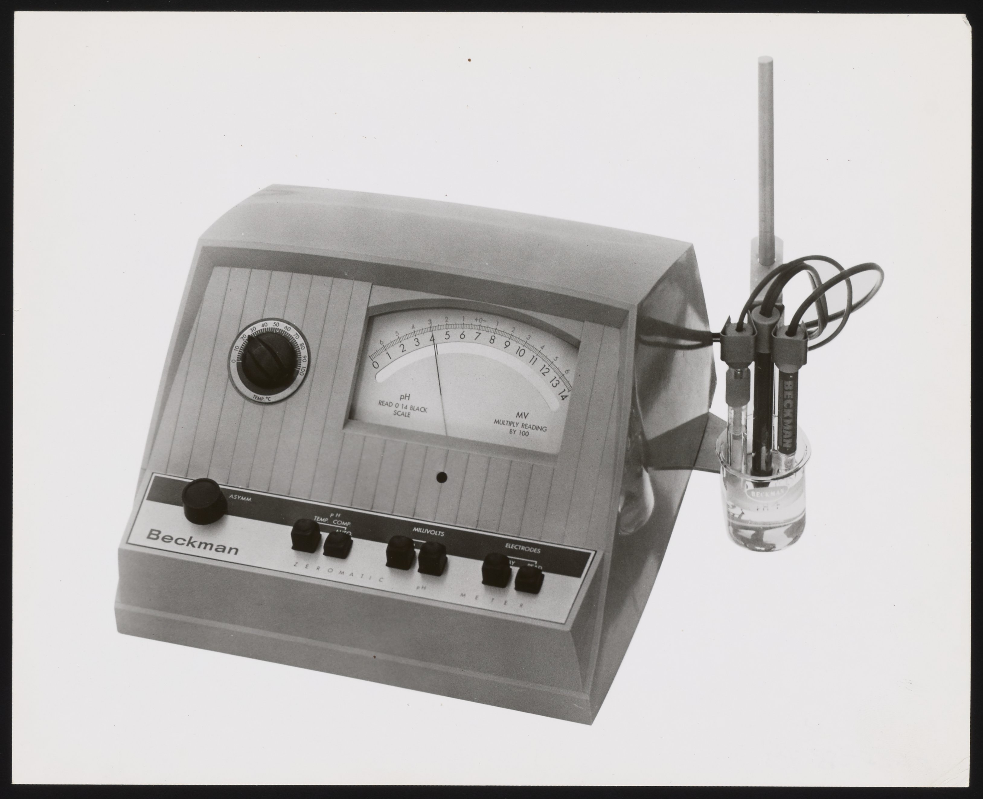 “Beckman Zeromatic PH Meter Model 960,” 1968. Beckman Historical Collection, Box 55, Folder 181. Science History Institute. Philadelphia. https://digital.sciencehistory.org/works/cz30ps75w.