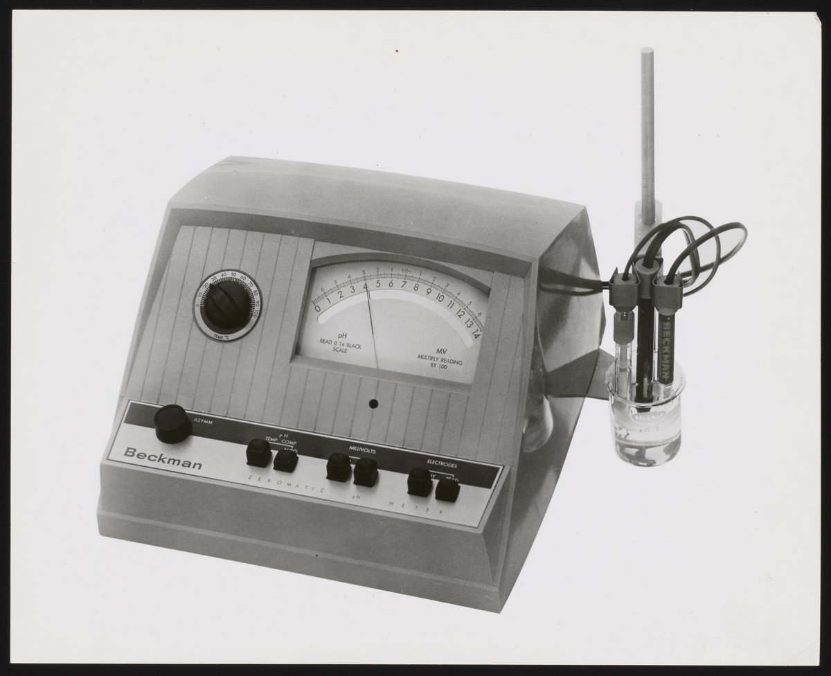 Arnold Beckman invented his first pH meter in 1934 at the request of a chemist from the California citrus industry, who needed an accurate way to measure the acidity of his product. The resulting instrument kicked off rapid development not only of Beckman Instruments, Inc. but also of the electronic scientific instrument industry.