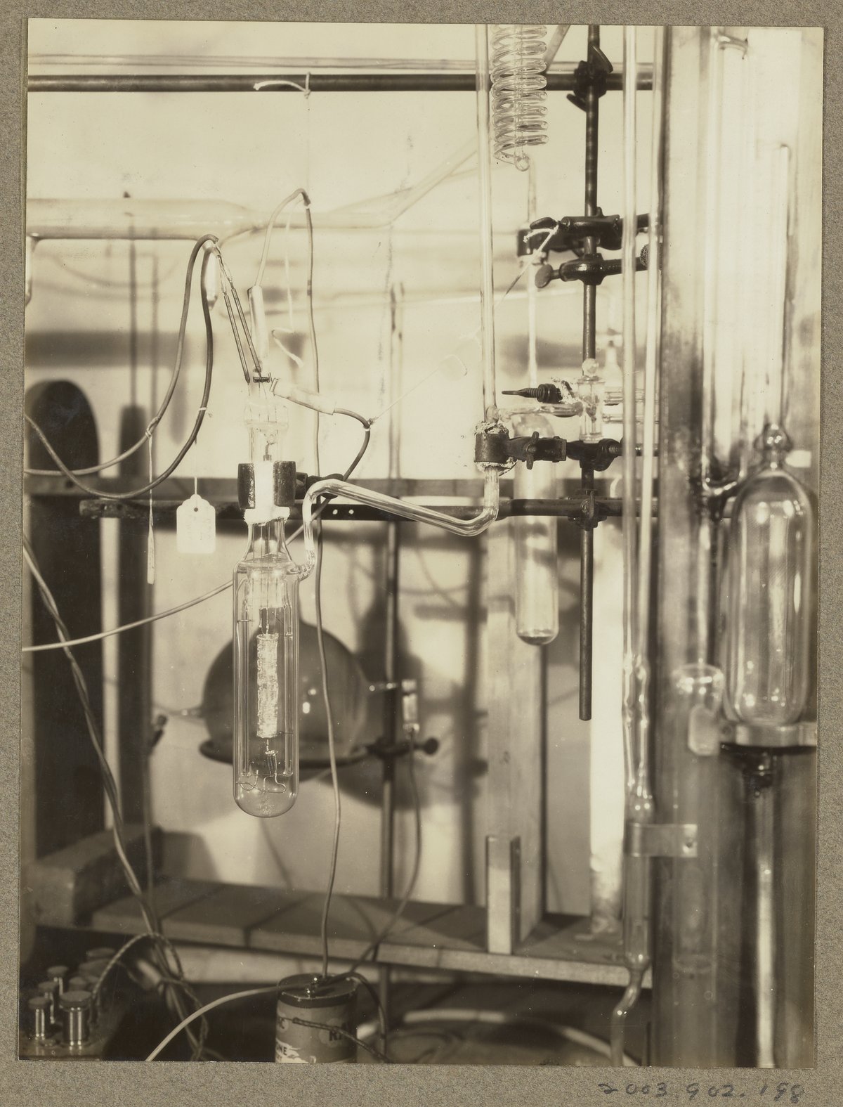 “Apparatus for Studying the Activation of Gases,” January 8, 1930. Travis P. Hignett Collection of Fixed Nitrogen Research Laboratory Photographs, Box 2. Science History Institute. Philadelphia. https://digital.sciencehistory.org/works/cz30ps83k.