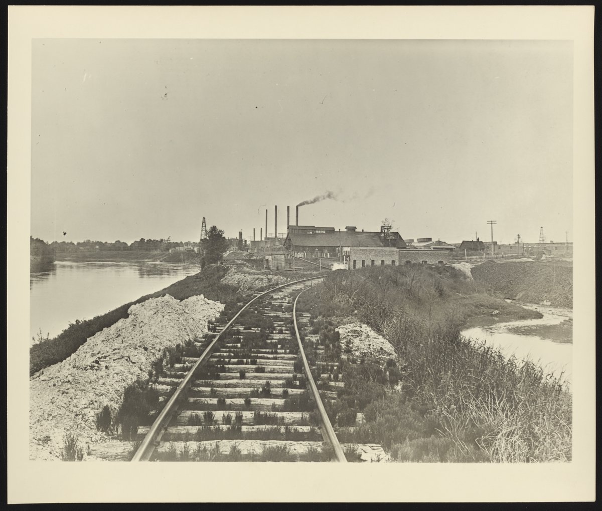Dow Chemical Company. “Railroad Tracks at Dow Chemical Company Plant,” 1930–1939. Dow Chemical Company Historical Image Collection, Box Oversized Plants 2. Science History Institute. Philadelphia. https://digital.sciencehistory.org/works/d217qp95x.