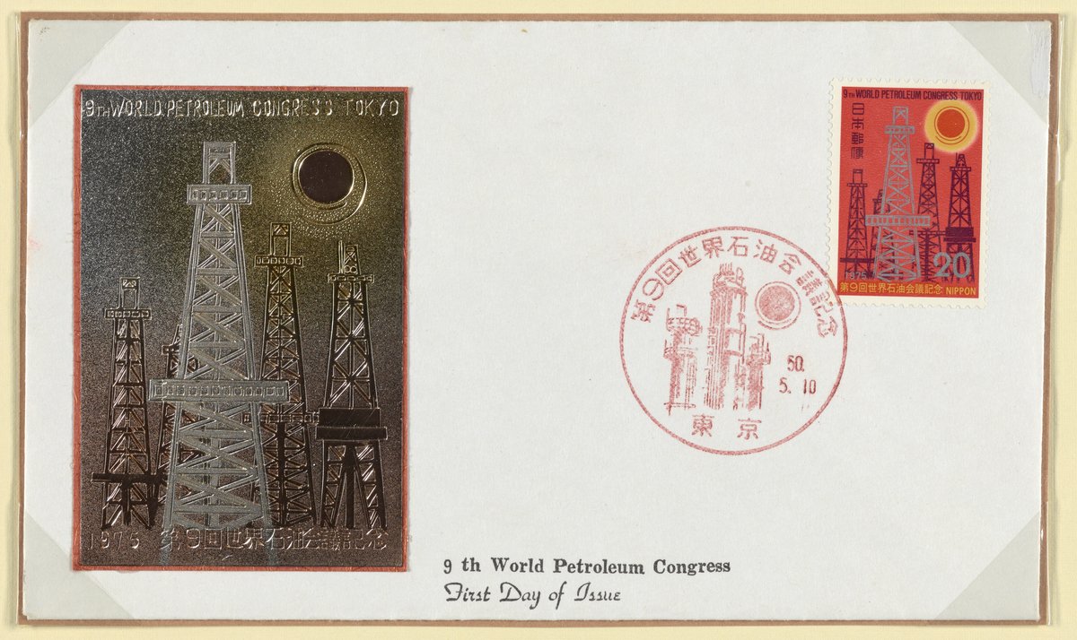 “First Day Cover Commemorating the 9th World Petroleum Conference, Tokyo.” Japan, 1975. Witco Stamp Collection, Box 7. Science History Institute. Philadelphia. https://digital.sciencehistory.org/works/d504rk35q.
