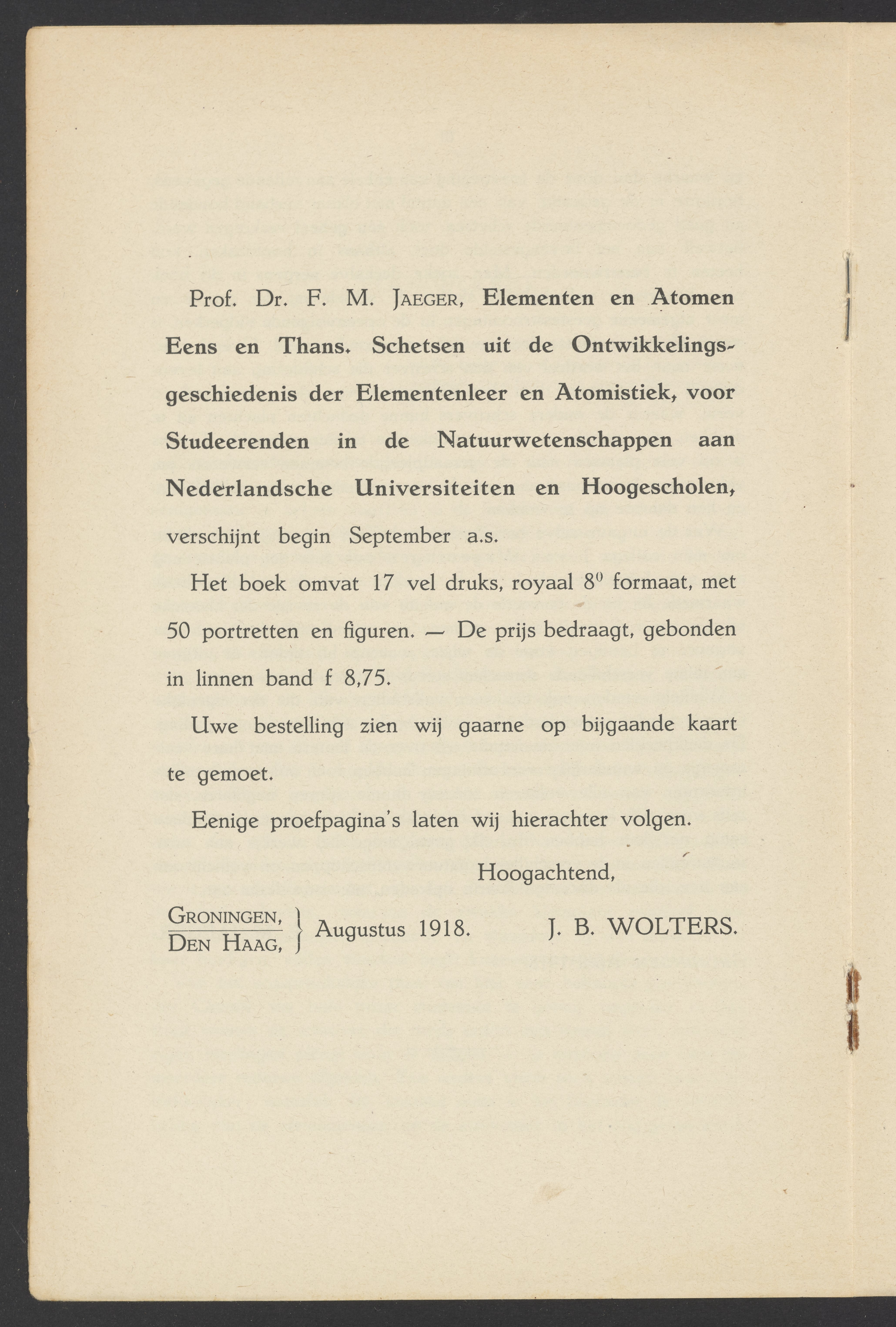 • Order card for books from Publisher J.B. Wolters