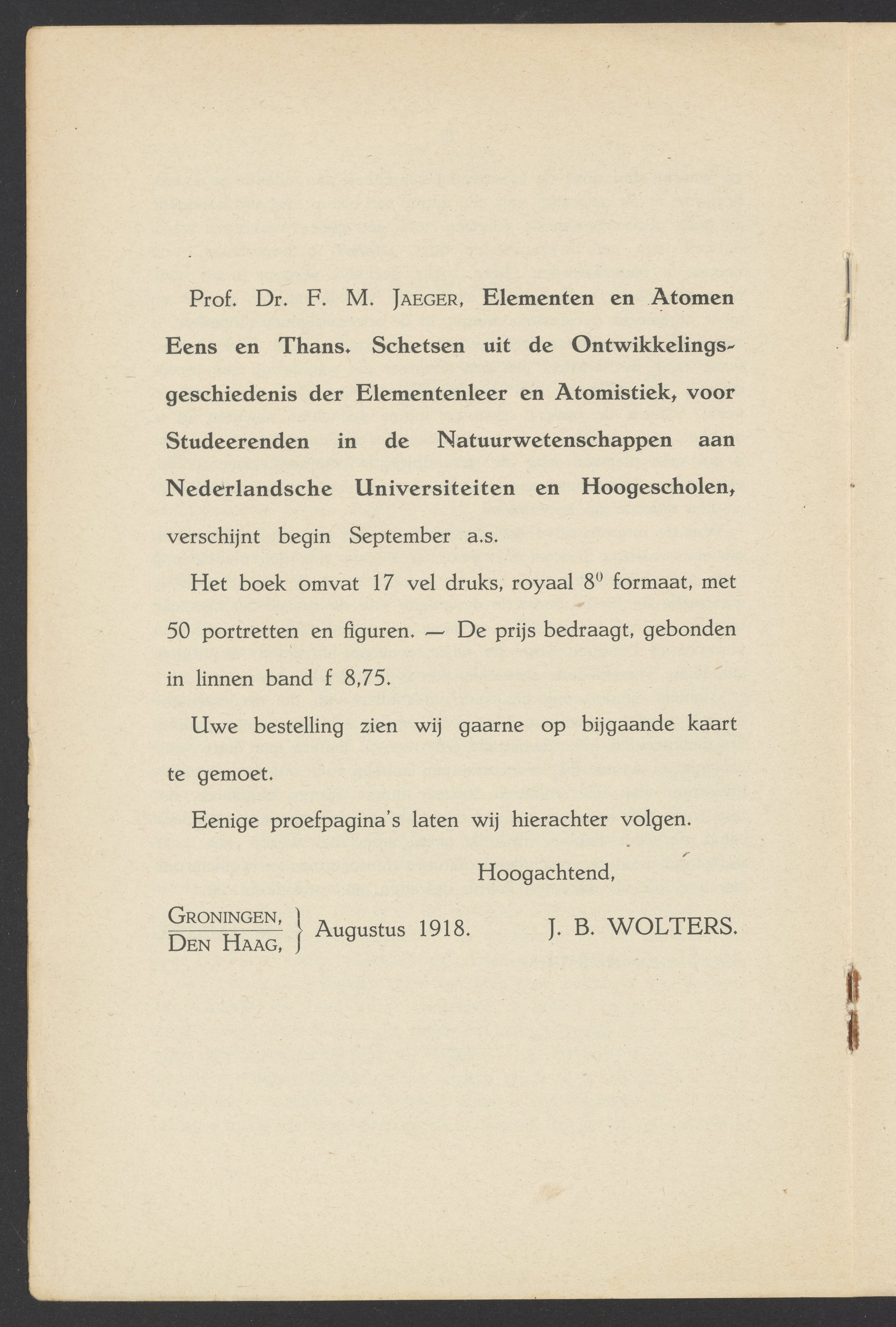 • Order card for books from Publisher J.B. Wolters