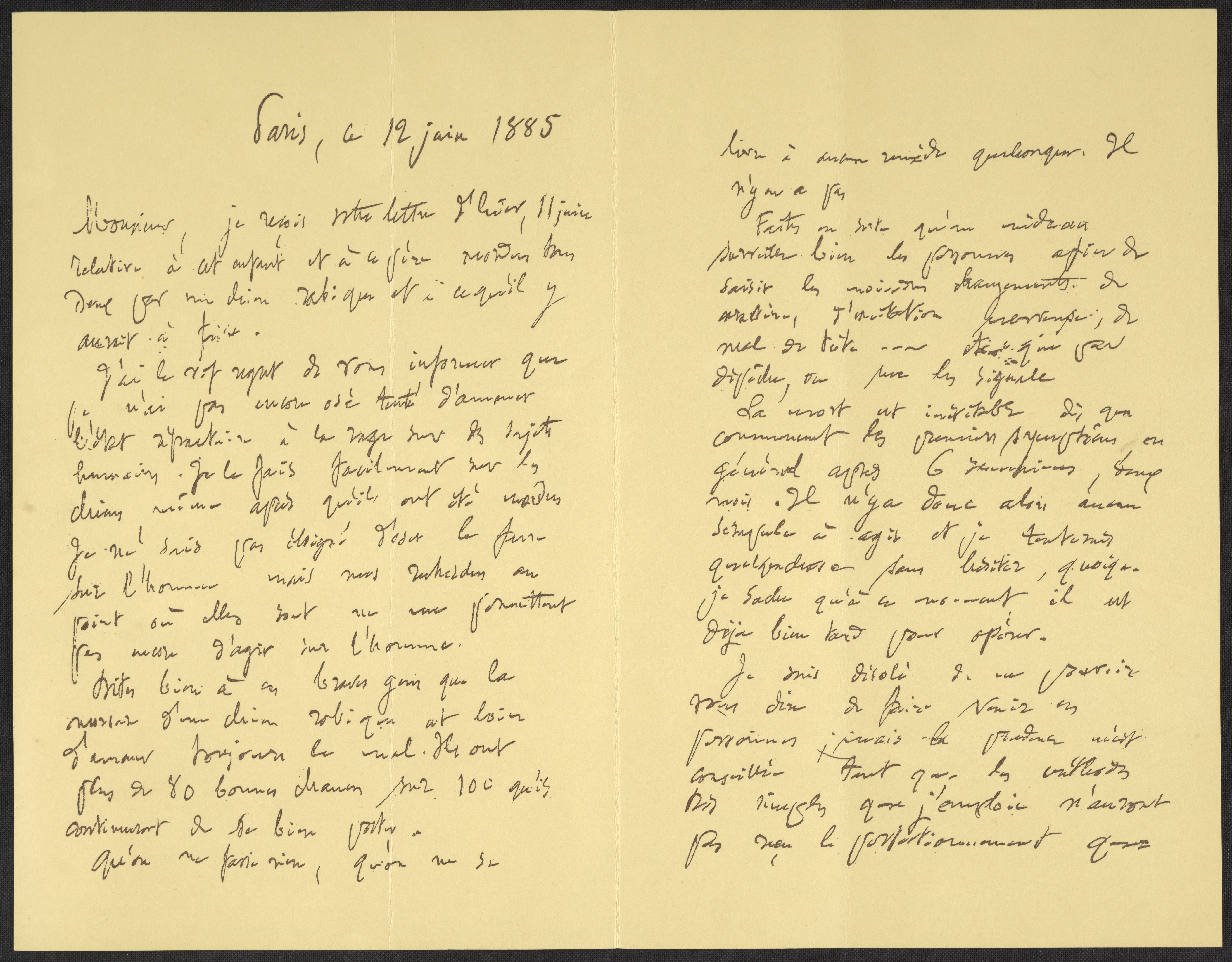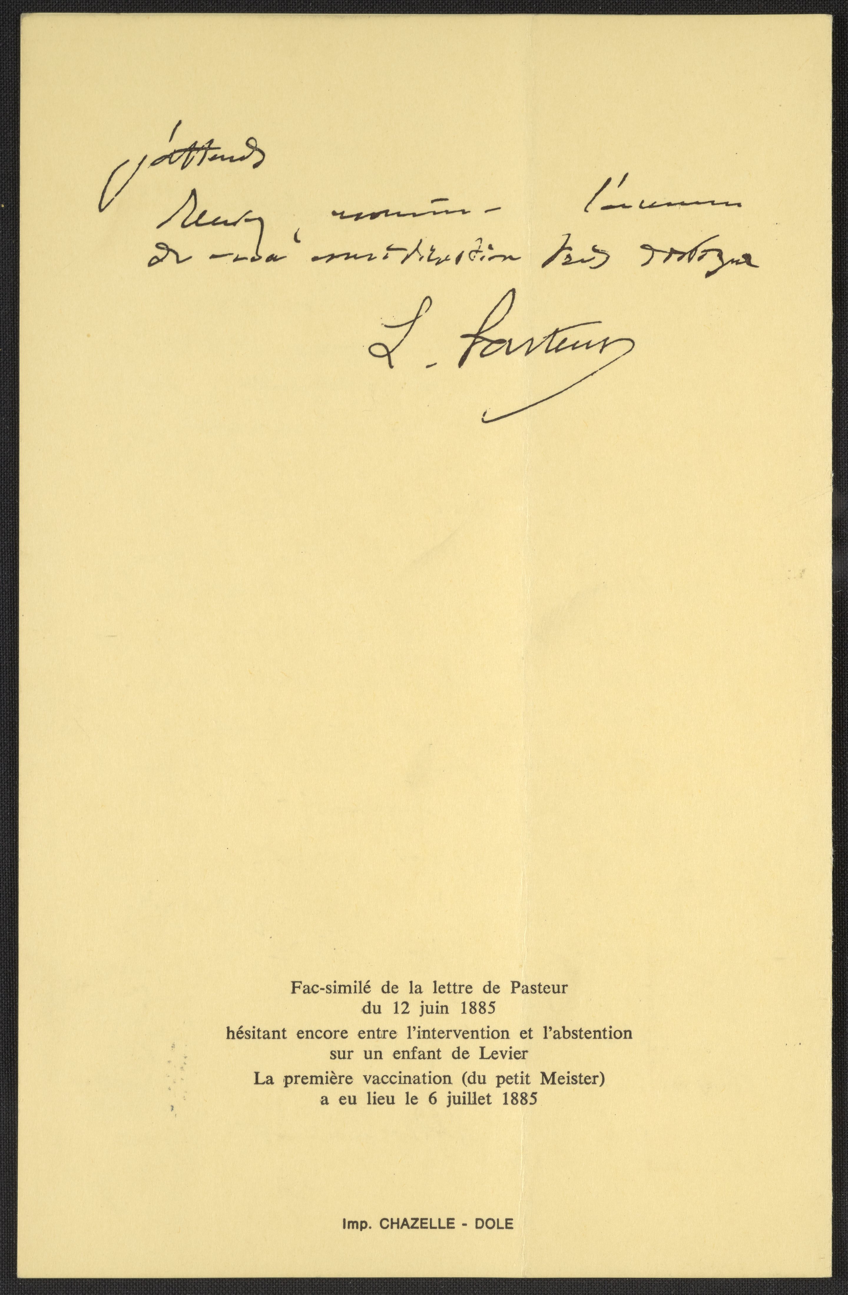 Gauthier, Jacques. “Facsimile of a Pasteur Letter, with French Postage Stamps Commemorating Louis Pasteur.” France, June 10, 1973. Fisher-Pasteur Memorial Collection, Box 1, Folder 24. Science History Institute. Philadelphia. https://digital.sciencehistory.org/works/db78tc04f.