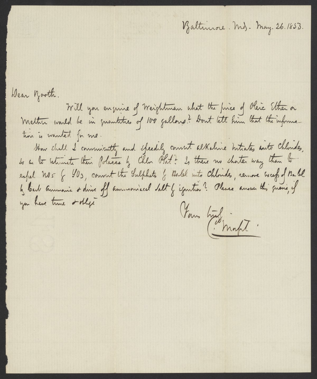 Letter from Campbell Morfit to James Curtis Booth, May 26, 1853