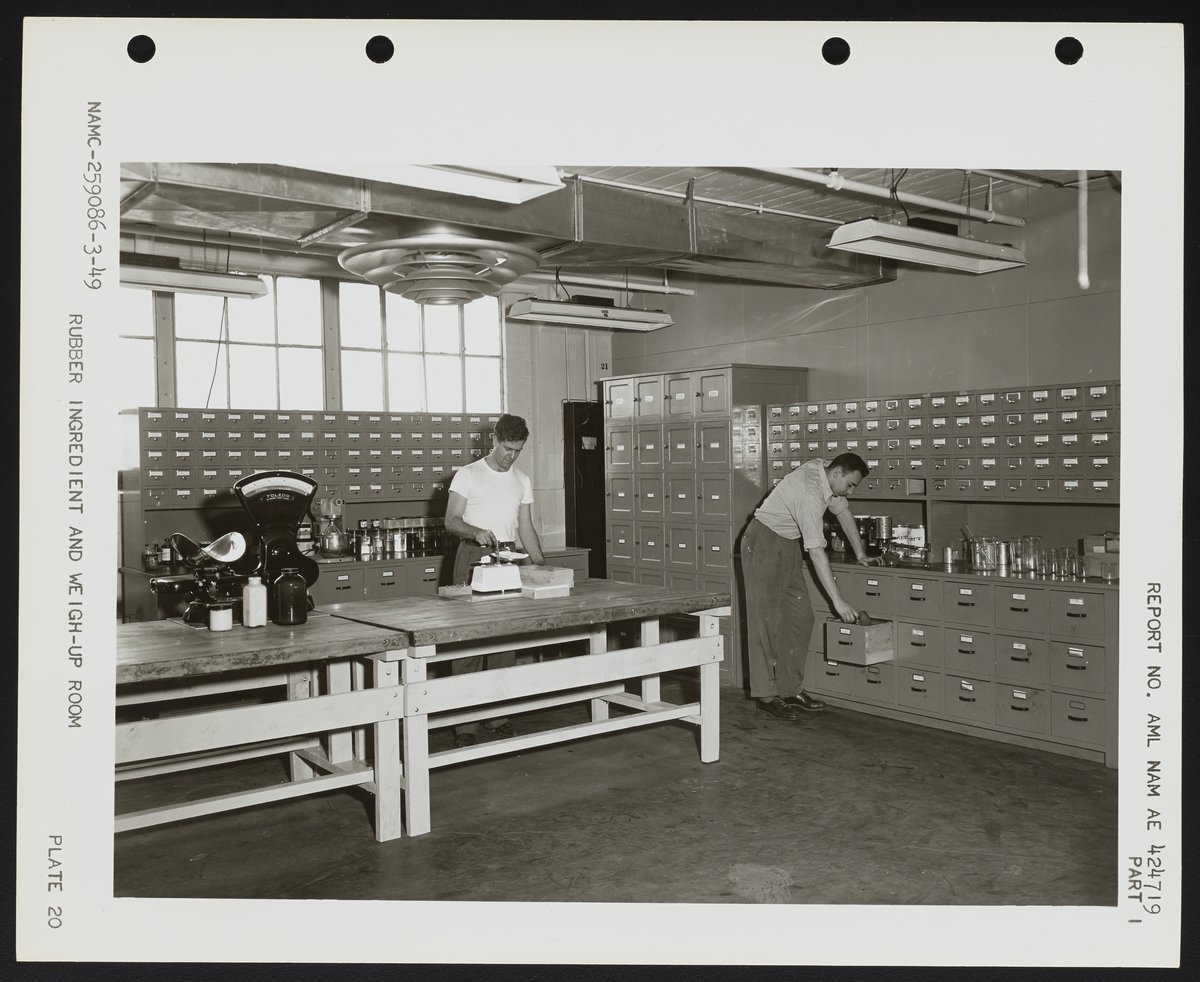 Naval Air Experimental Station, and United States. Navy. “Rubber Ingredient and Weigh-Up Room,” circa 1949. Photographs from the Papers of J. Hartley Bowen, Box 1. Science History Institute. Philadelphia. https://digital.sciencehistory.org/works/dj52w4734.