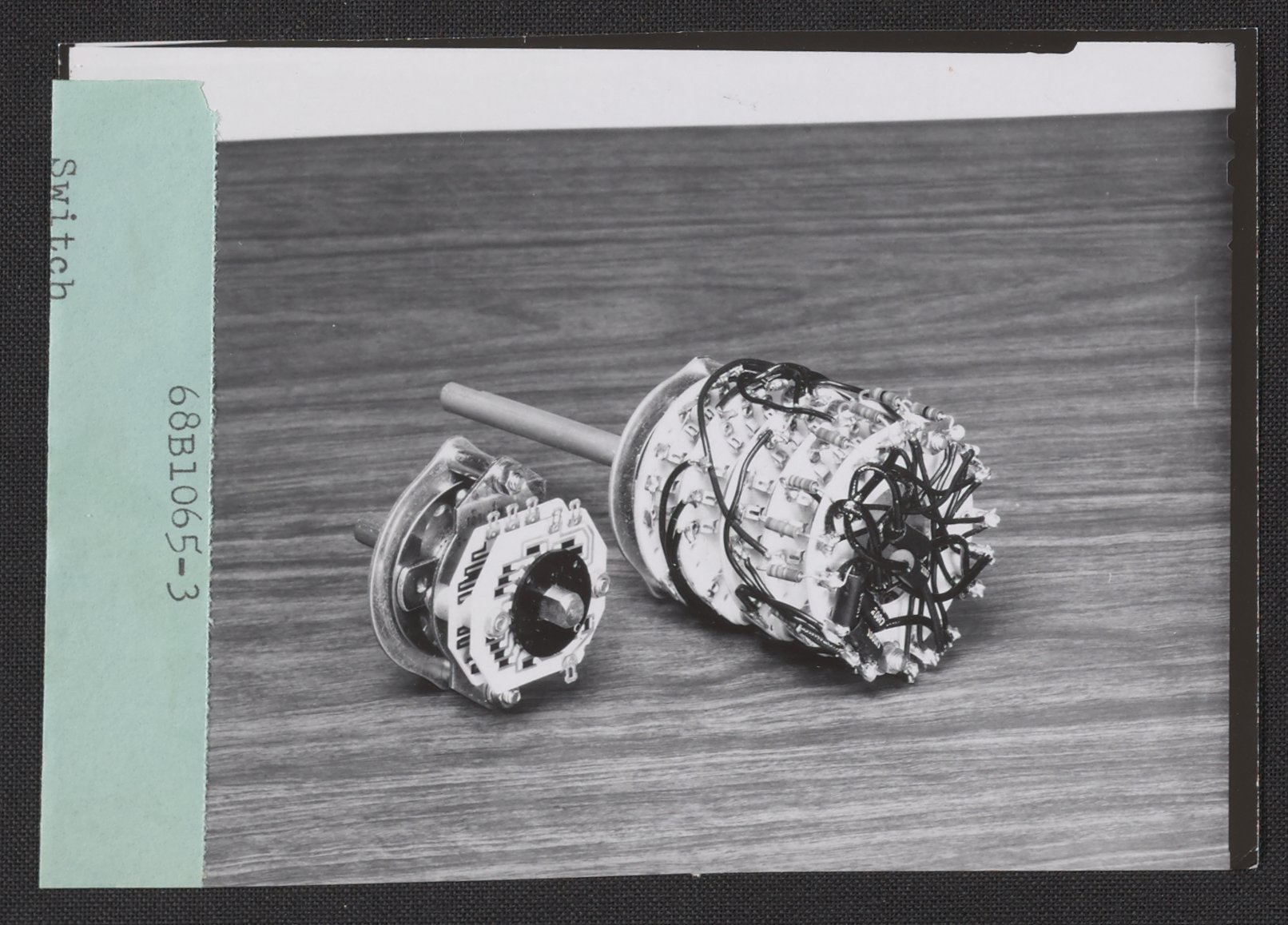 Beckman Instruments Photographic Services Section. “Helipot Cermet Switch,” circa 1968. Beckman Historical Collection, Box 85. Science History Institute. Philadelphia. https://digital.sciencehistory.org/works/dj52w515f.
