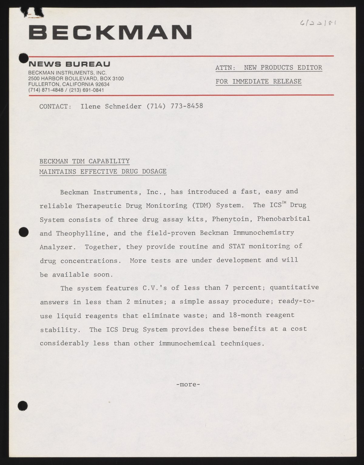 Beckman TDM Capability Maintains Effective Drug Dosage