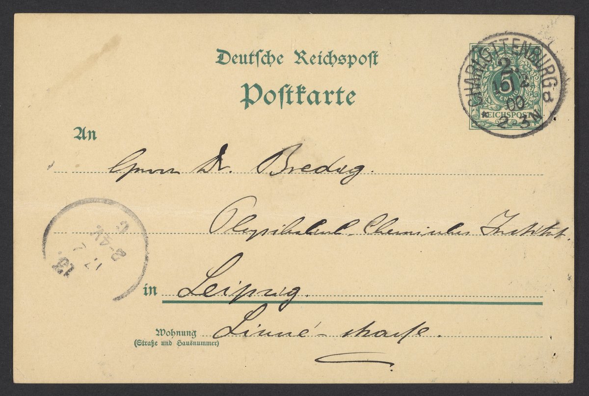 Postcard from Jacobus H. van 't Hoff to Georg Bredig, February 1900