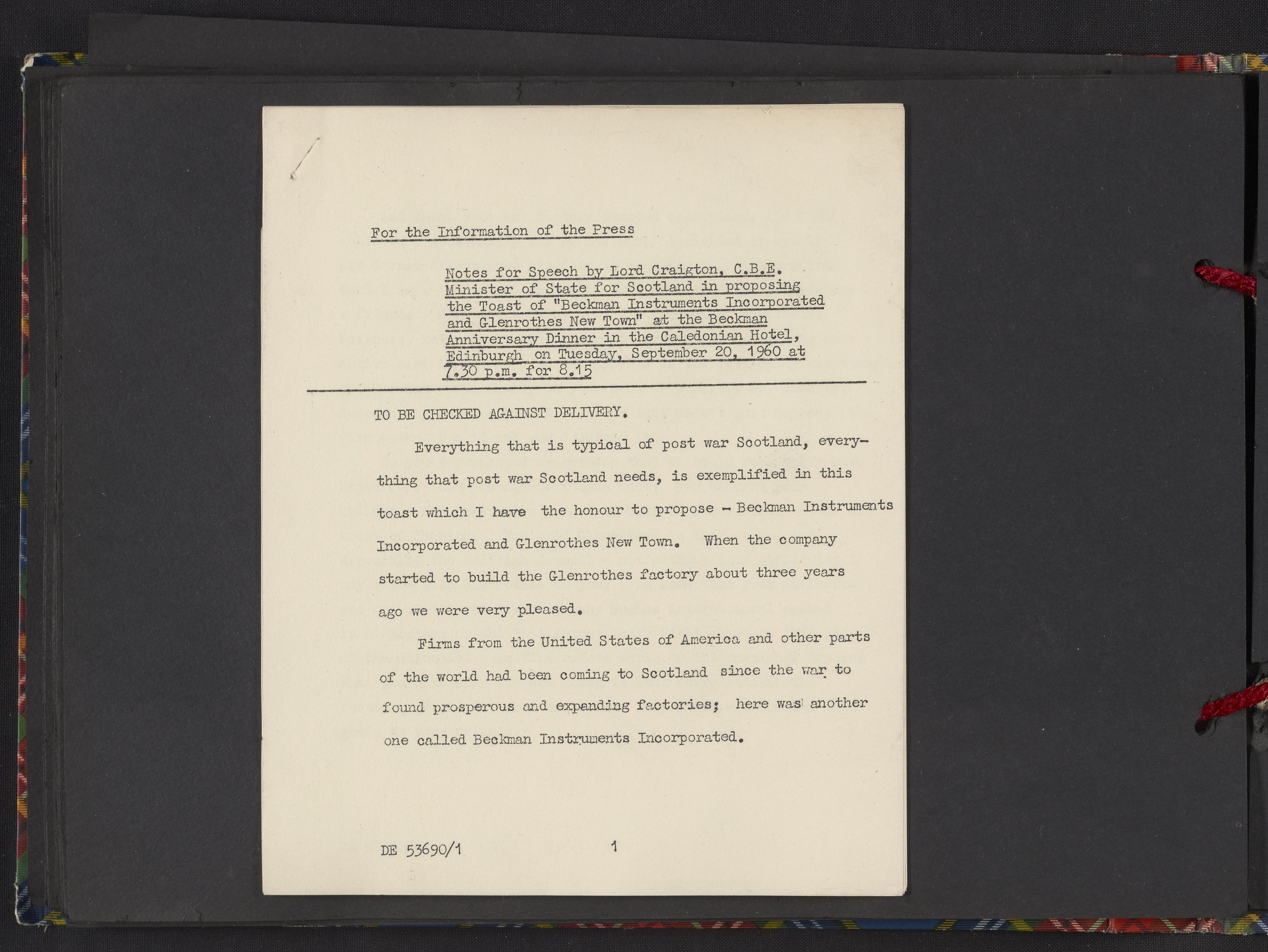 Notes for Lord Craigton's speech at Beckman Instruments, Inc.'s 25th anniversary dinner