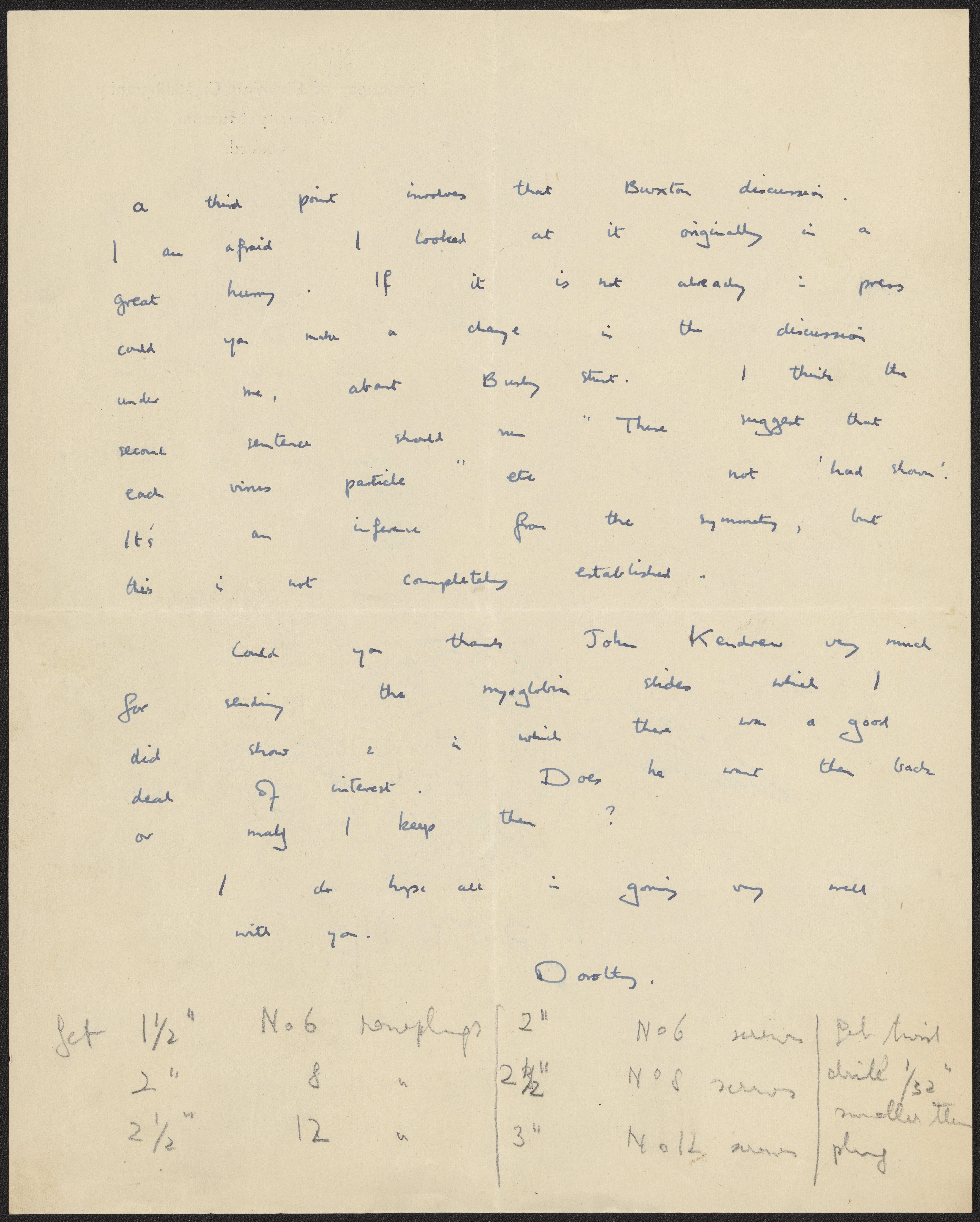 Hodgkin, Dorothy. “Letter from Dorothy Hodgkin to Max Perutz, July 1, 1949,” July 1, 1949. History of Molecular Biology Collection, Box 76, Folder 5. Science History Institute. Philadelphia. https://digital.sciencehistory.org/works/dnmui53.