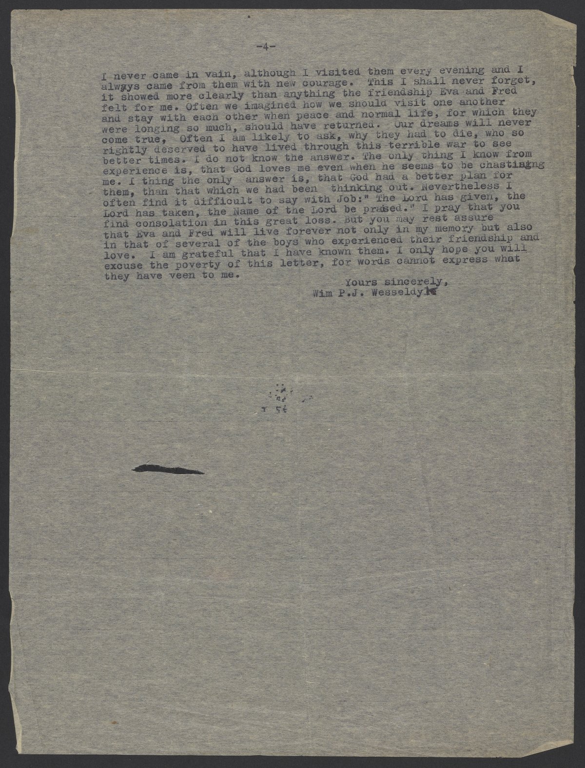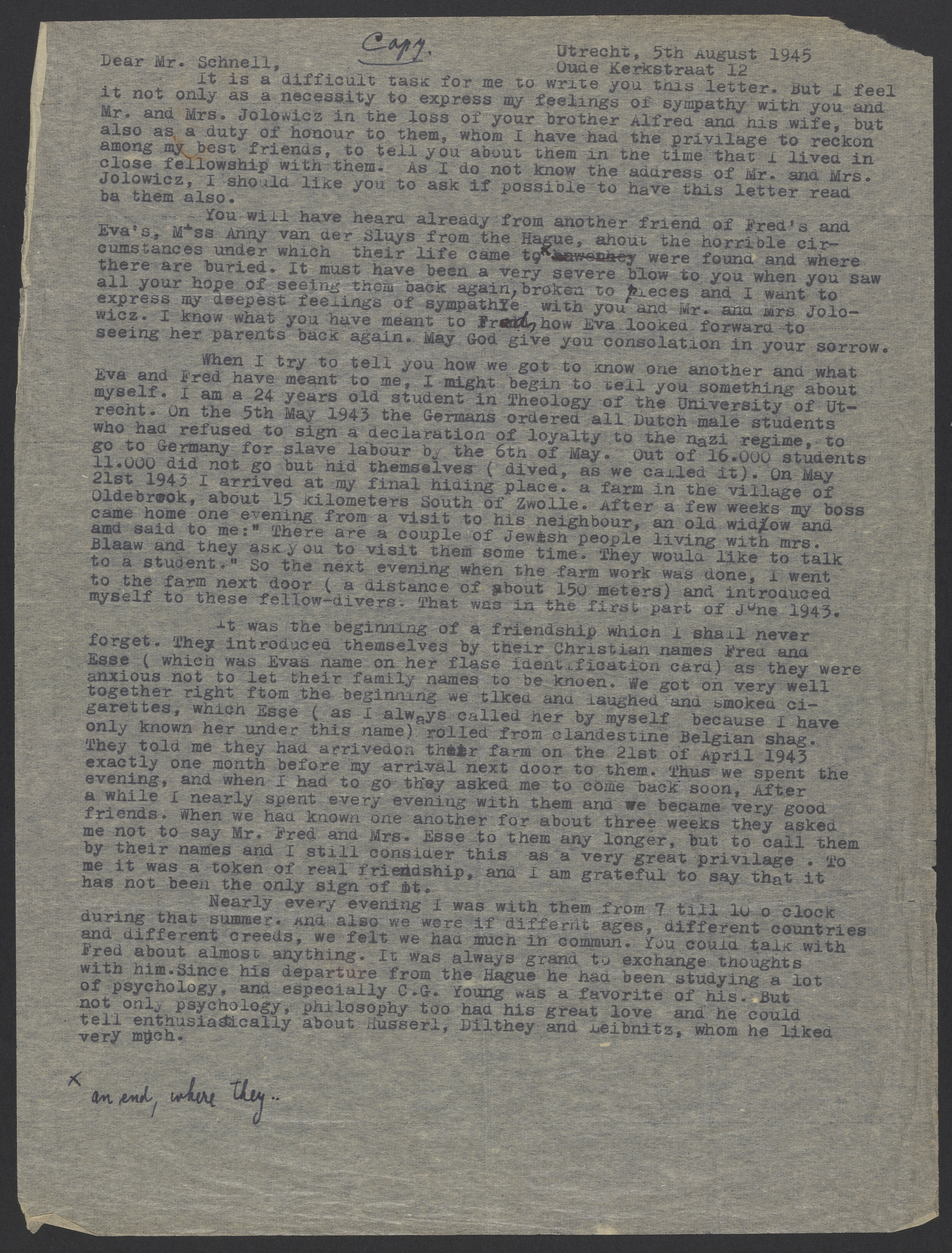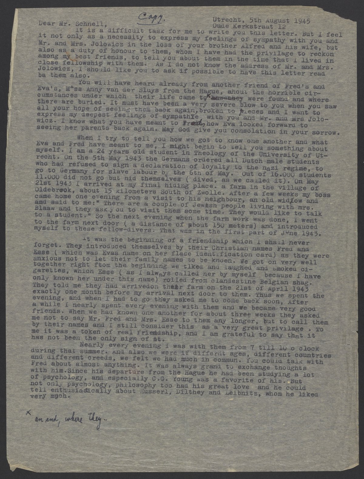 Letter from P.J. Wesseldy to Federico Schnell, August 5, 1945