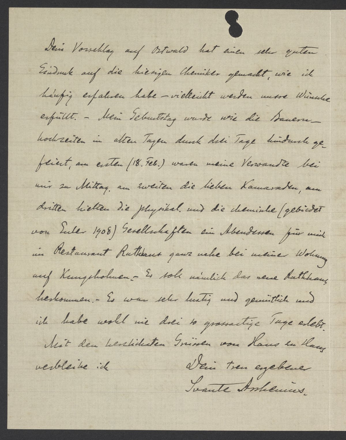 Letter from Svante Arrhenius to Georg Bredig, March 1909