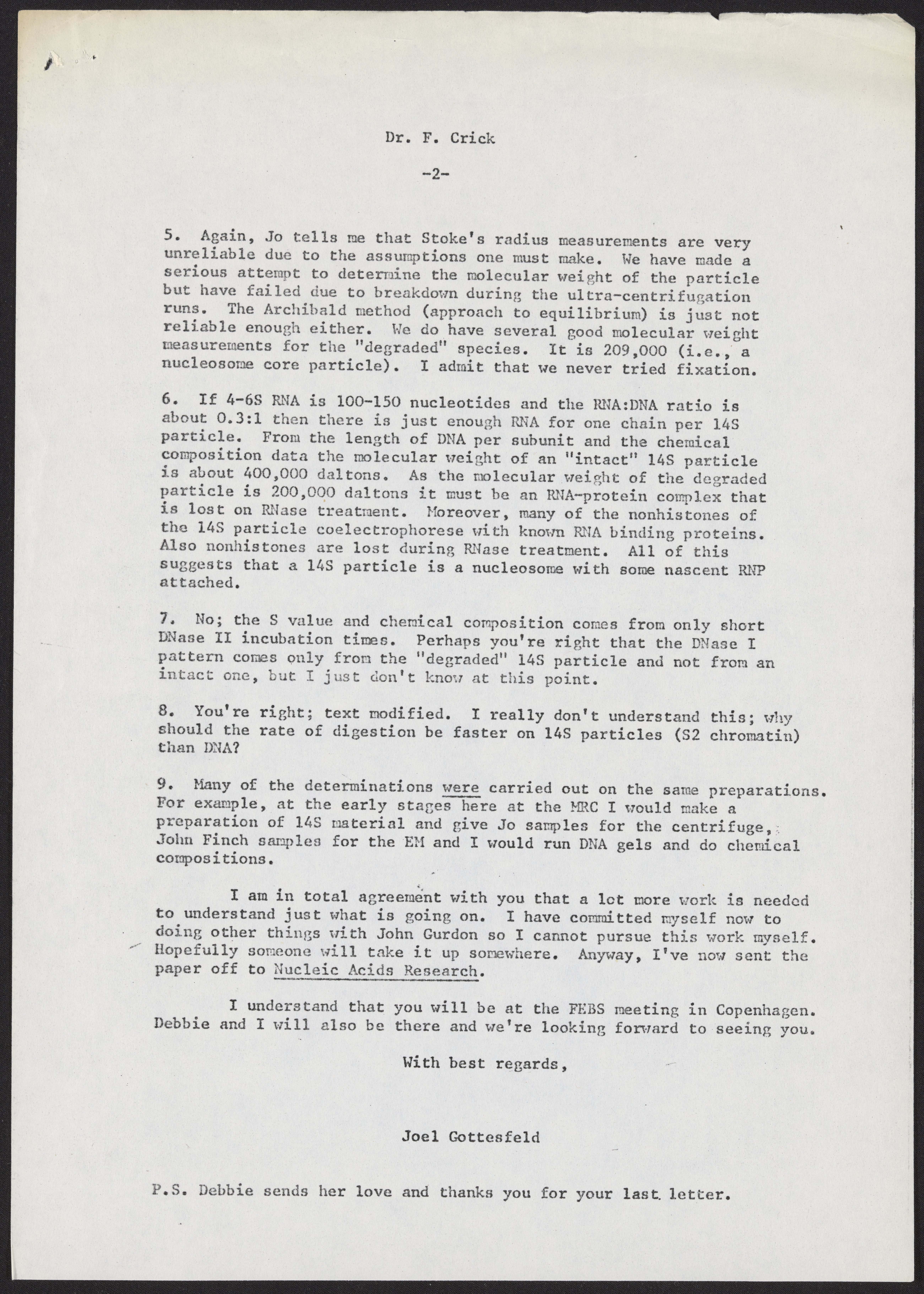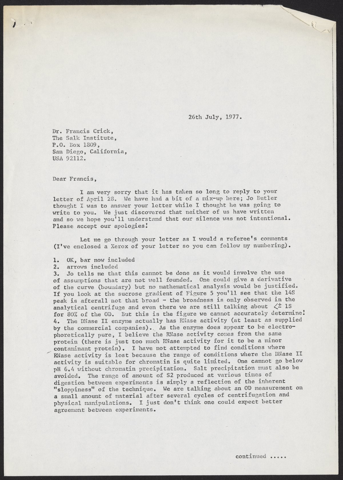 Letter from Joel Gottesfeld to Francis Crick, July 26, 1977