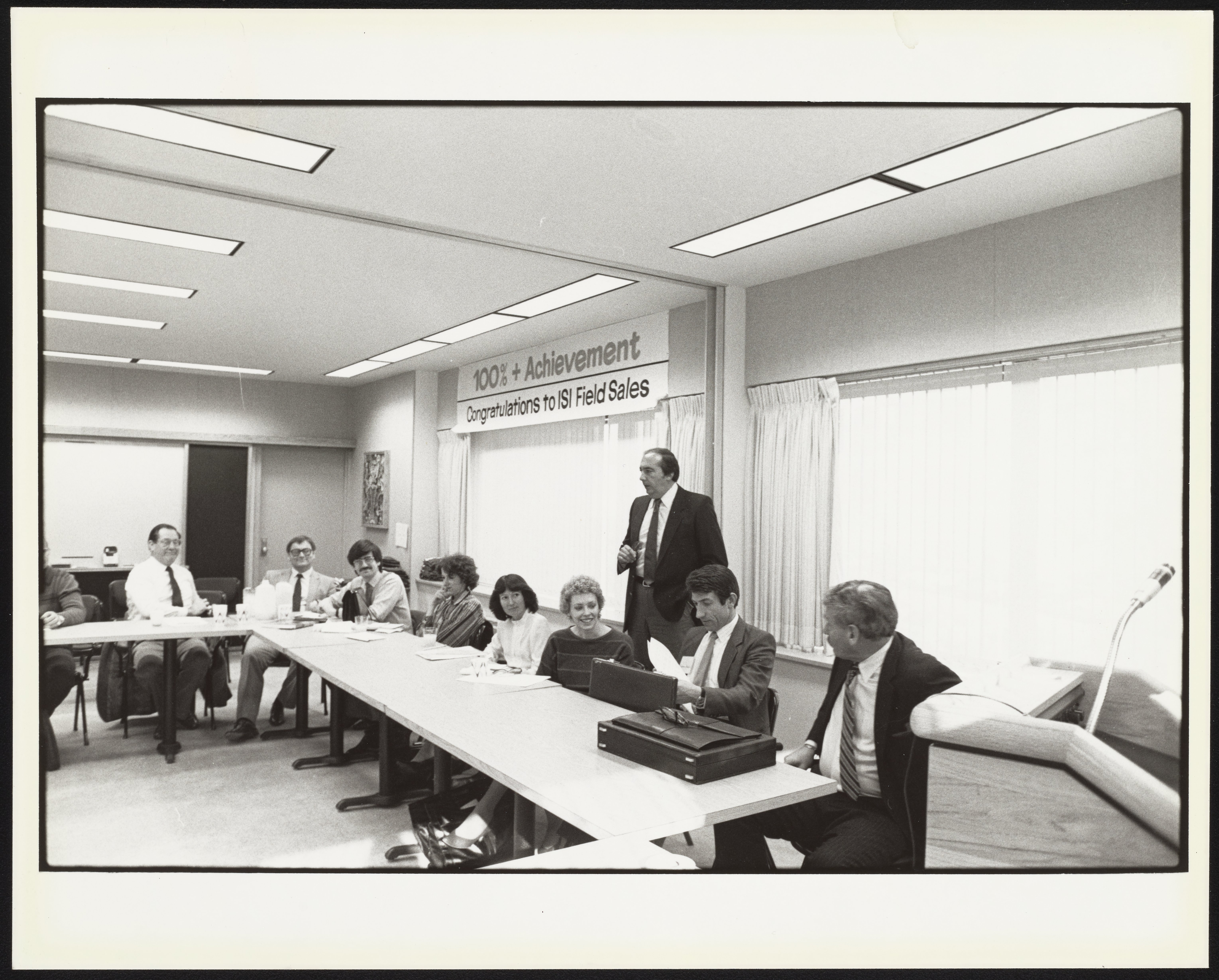 Benson, Neil. “Institute for Scientific Information Sales Team Meeting,” 1980–1989. Eugene Garfield Papers, Box 125. Science History Institute. Philadelphia. https://digital.sciencehistory.org/works/dydlas4.