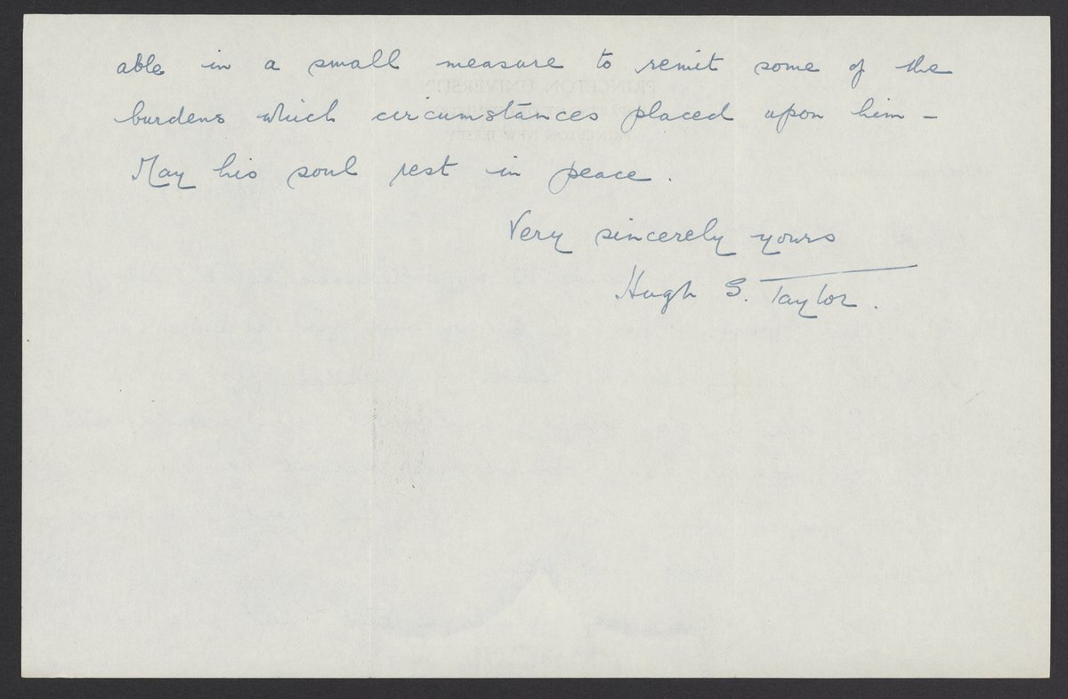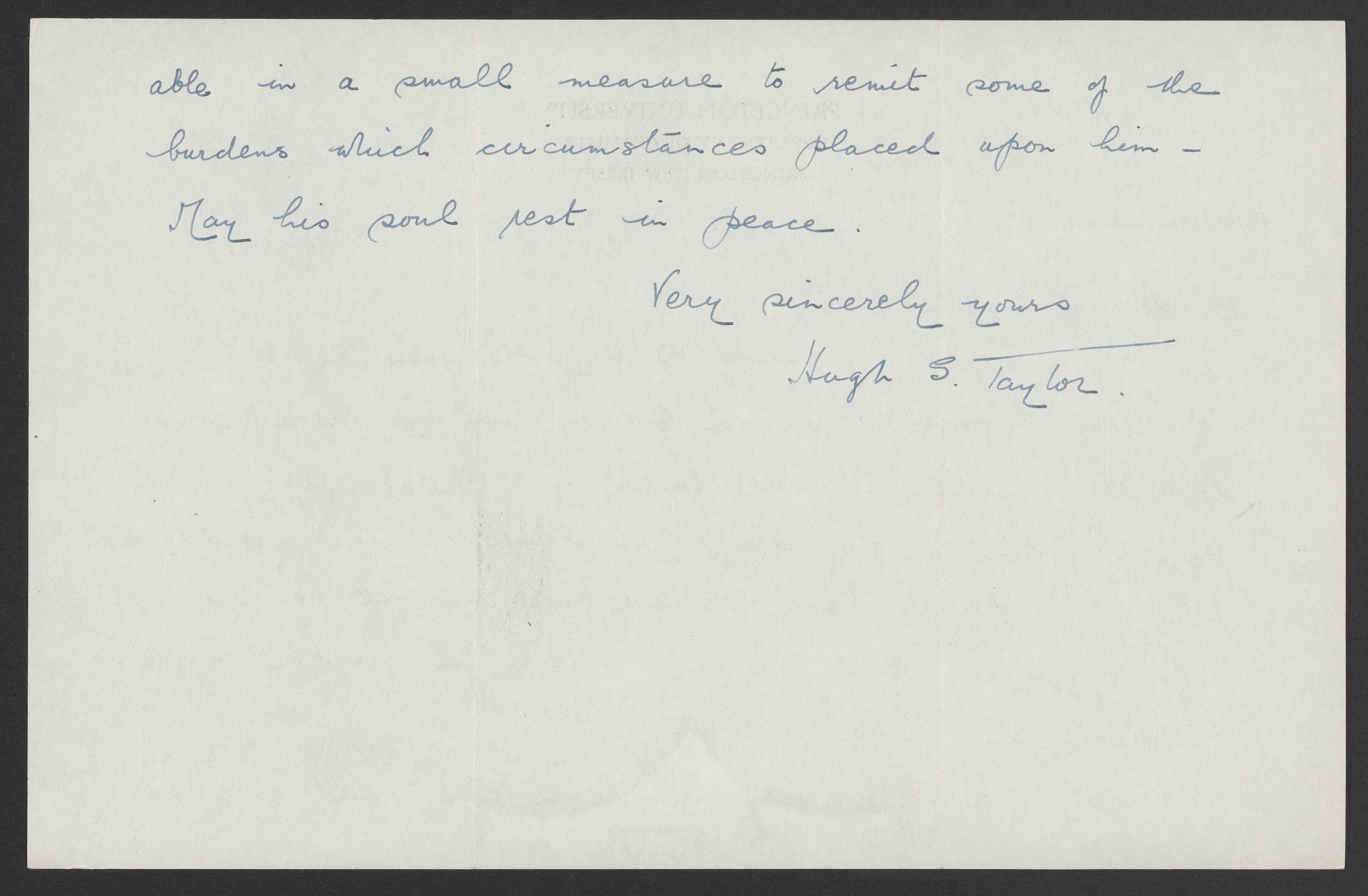 Small JPG1200 x 791px — 117 KBLarge JPG2880 x 1899px — 625 KBFull-sized JPG5338 x 3519px — 2.0 MBOriginal fileTIFF — 5338 x 3519px — 53.8 MBLetter of condolence regarding the death of Georg Bredig (1868-1944) from from Hugh Stott Taylor (1890-1974), on behalf of chemistry department of Princeton University, to Max Albert Bredig (1902-1977).