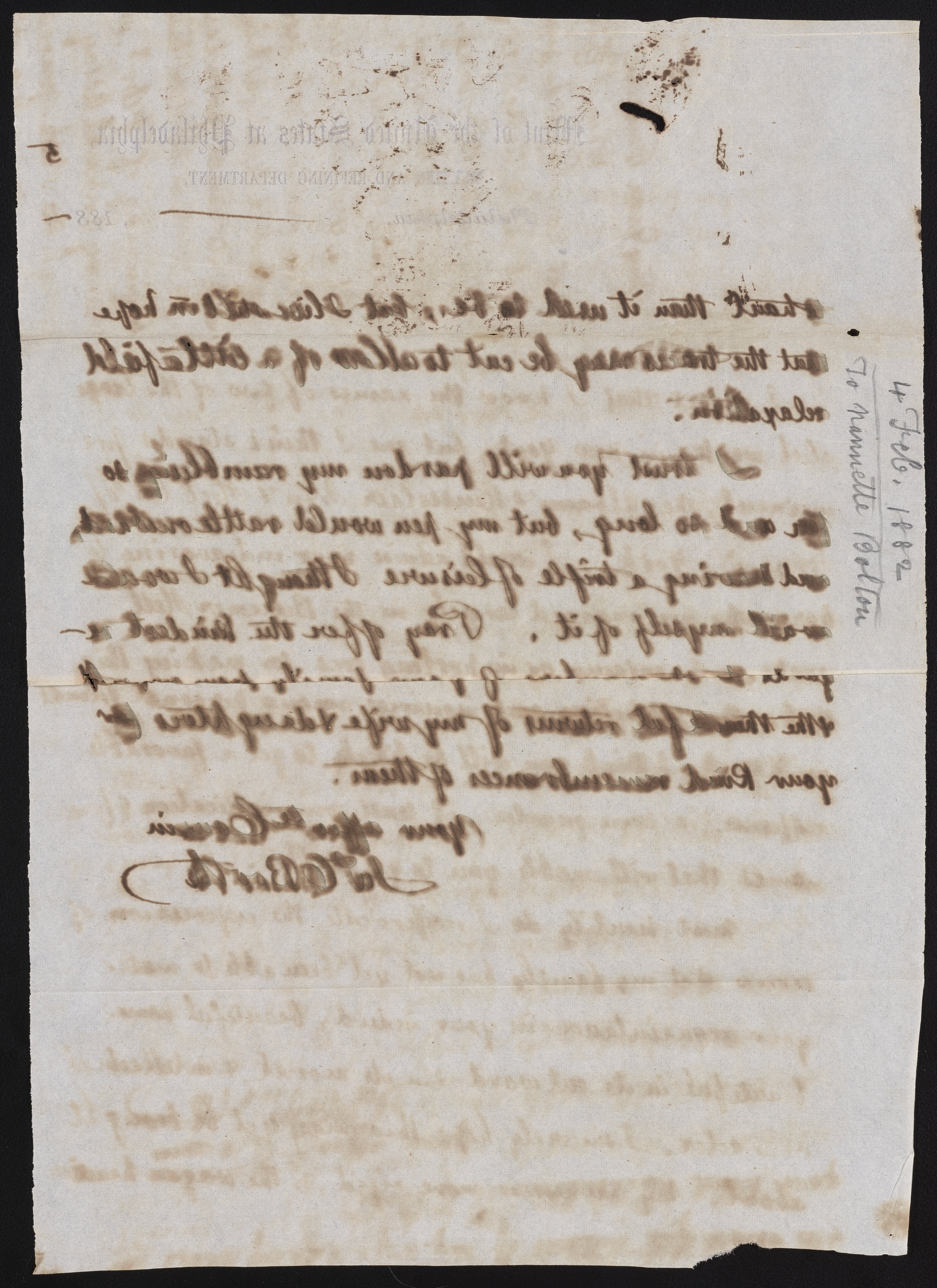Letter from James Curtis Booth to Nanette Bolton, February 4, 1882
