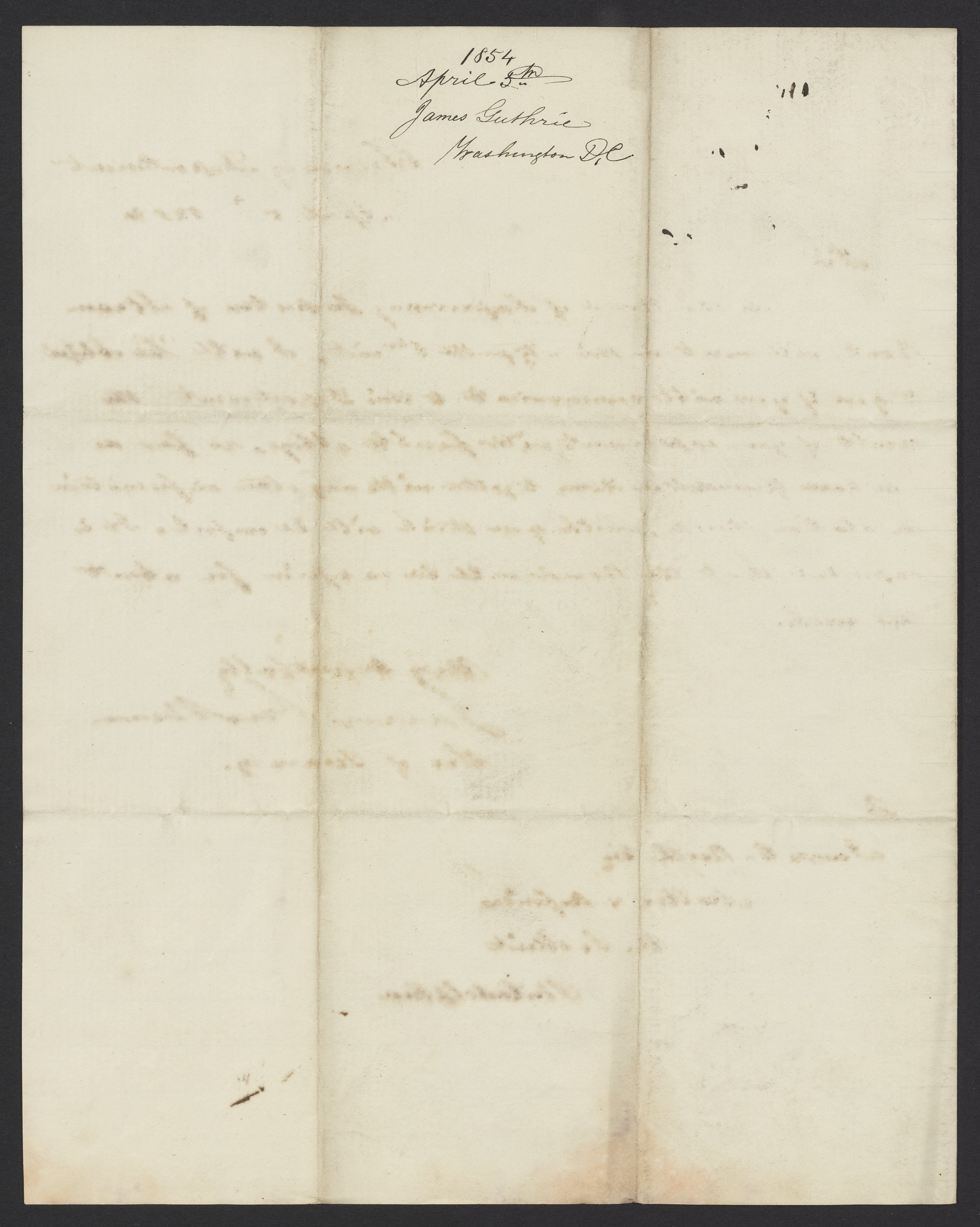 Letter from James B. Guthrie to James Curtis Booth, April 5, 1854