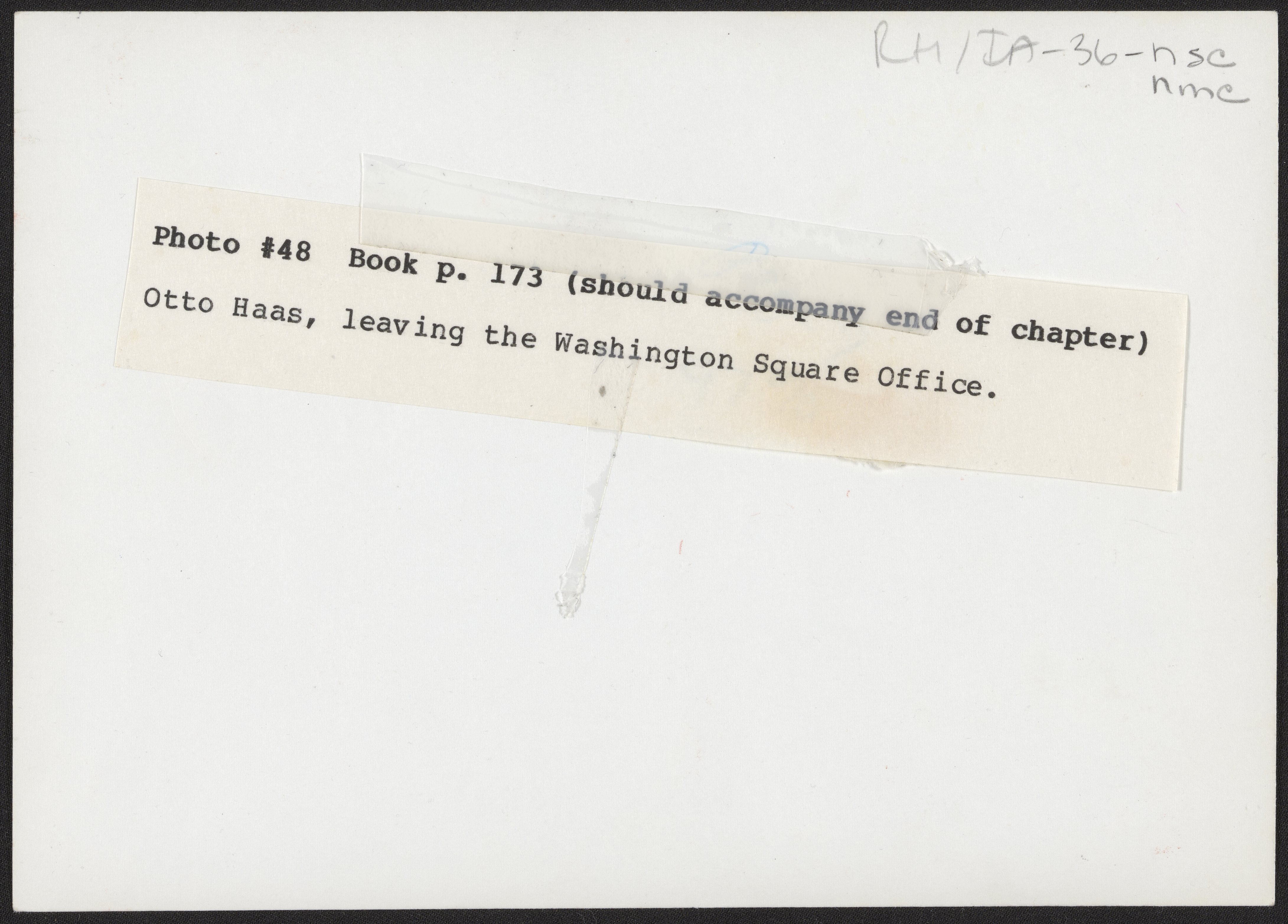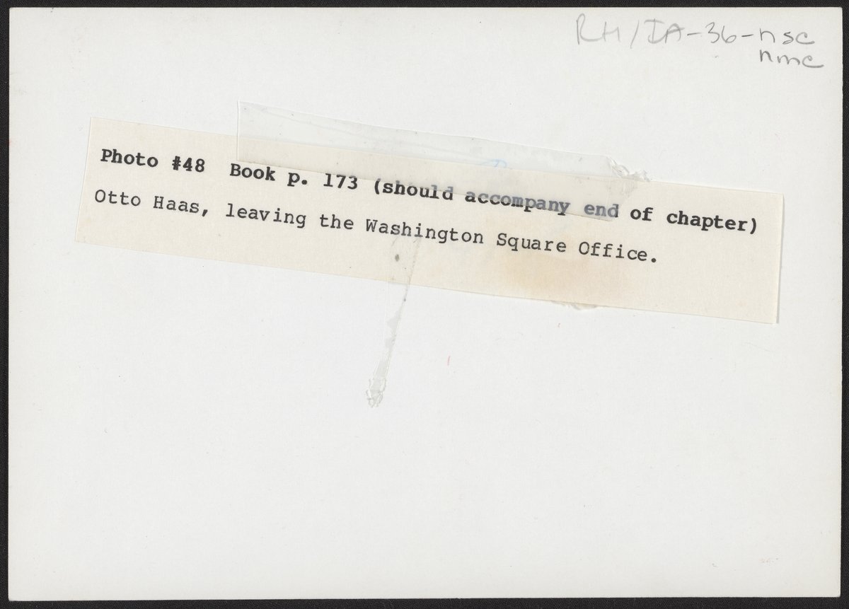 “Otto Haas Leaving the Rohm and Haas Office,” n.d. Rohm & Haas Company Archives, Box 1, Folder 8. Science History Institute. Philadelphia. https://digital.sciencehistory.org/works/eg2ihc1.