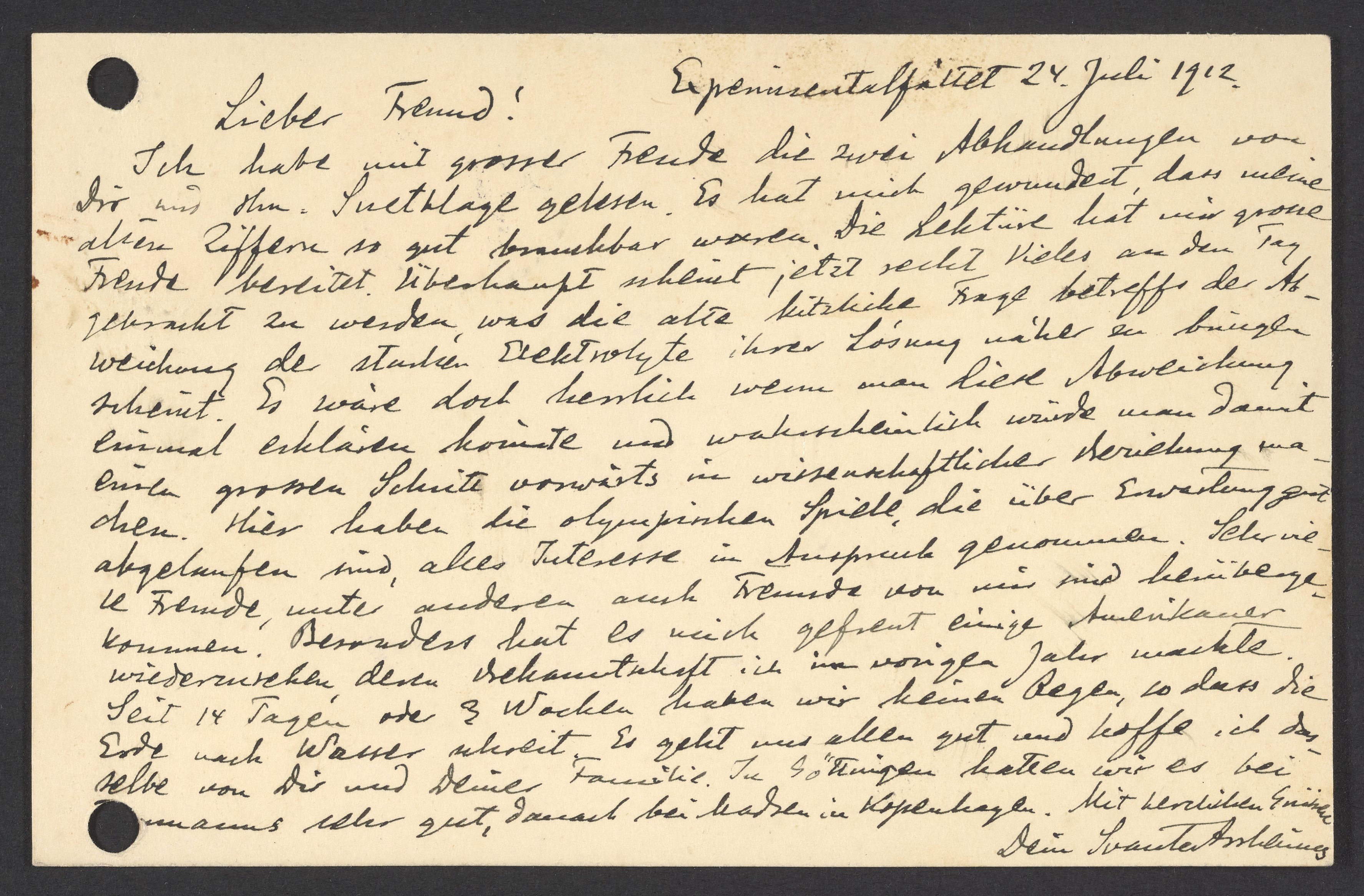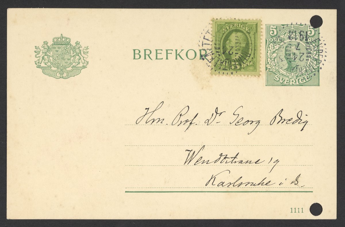 Postcard from Svante Arrhenius to Georg Bredig, January 1912