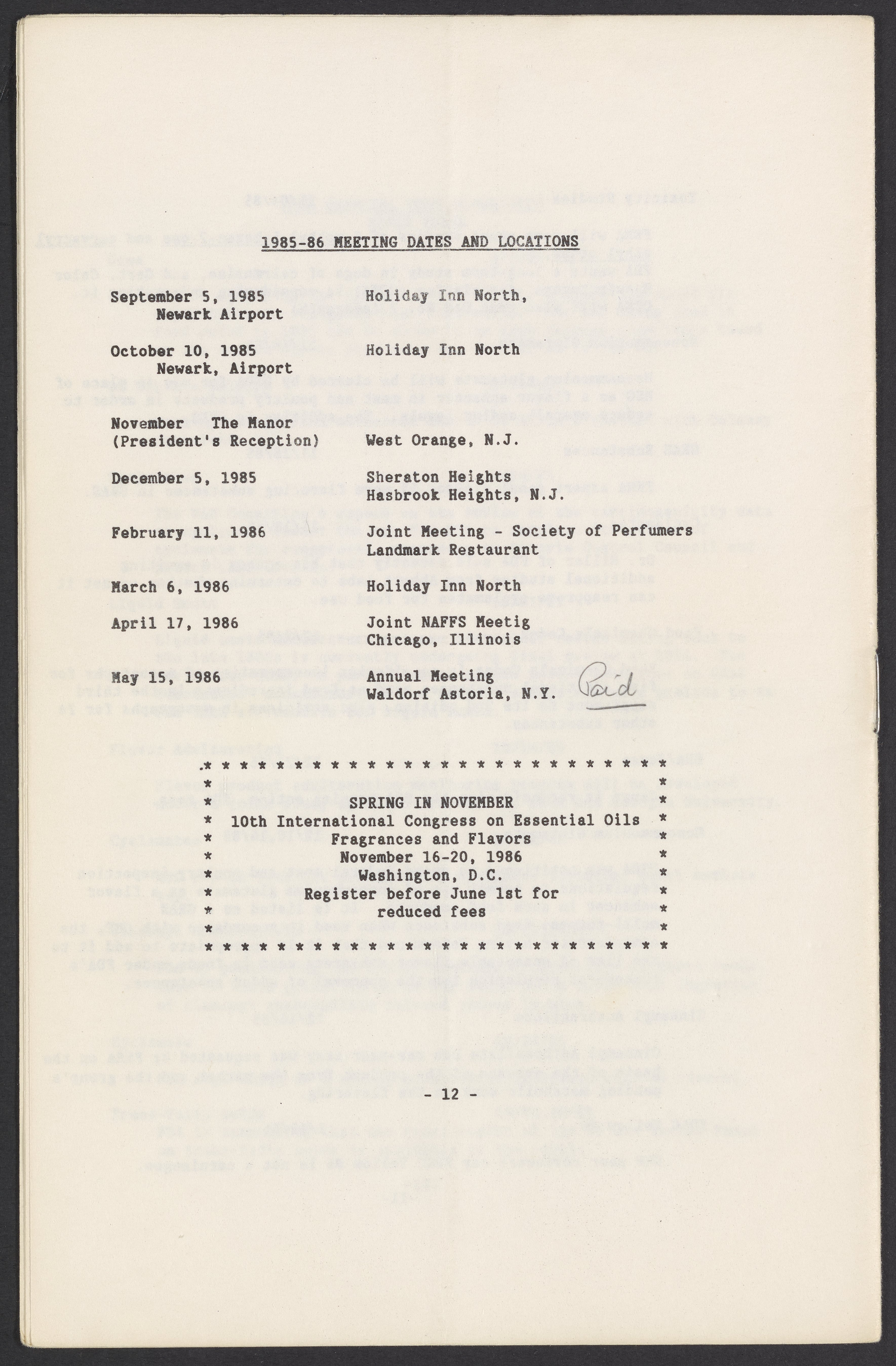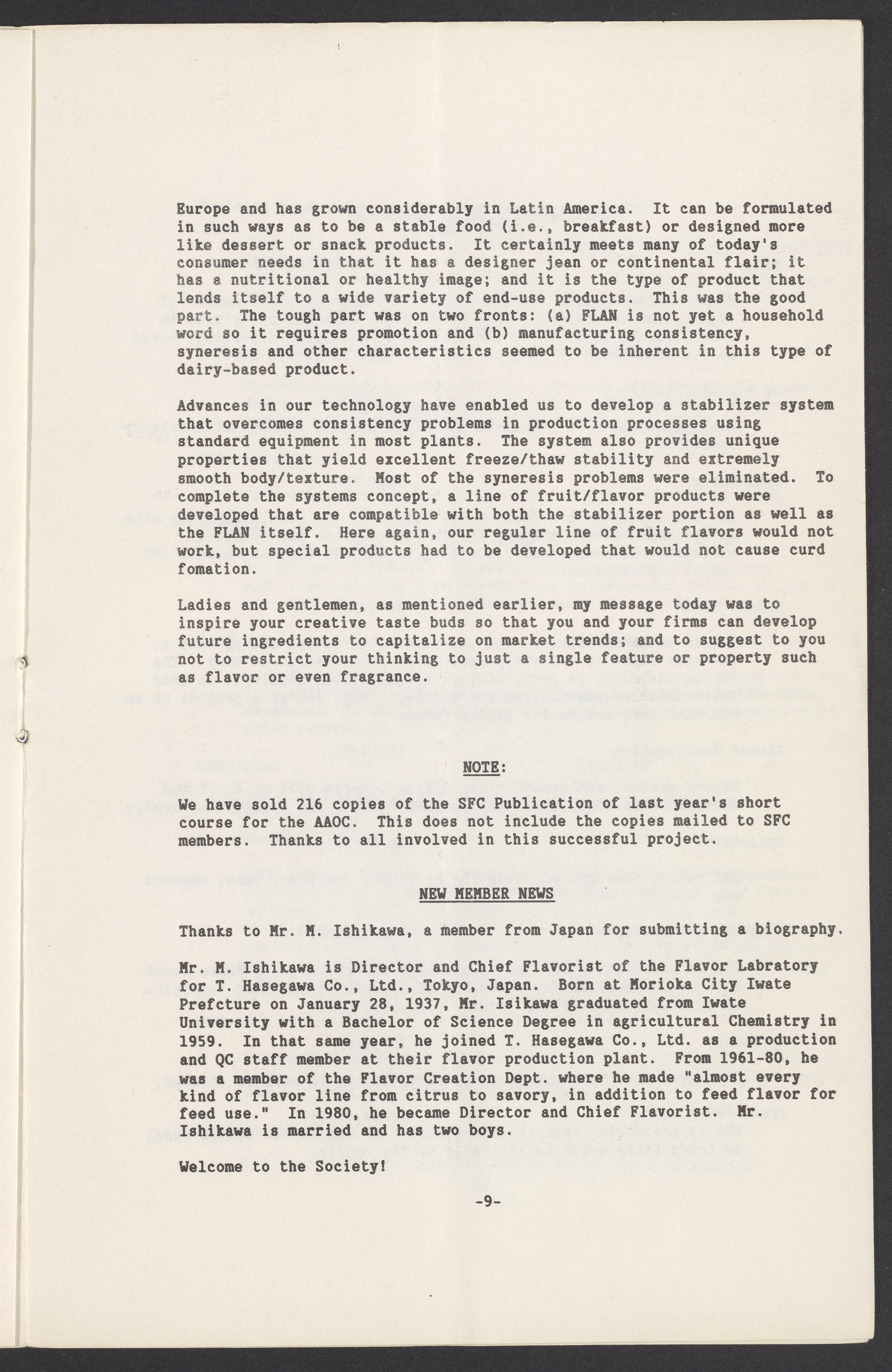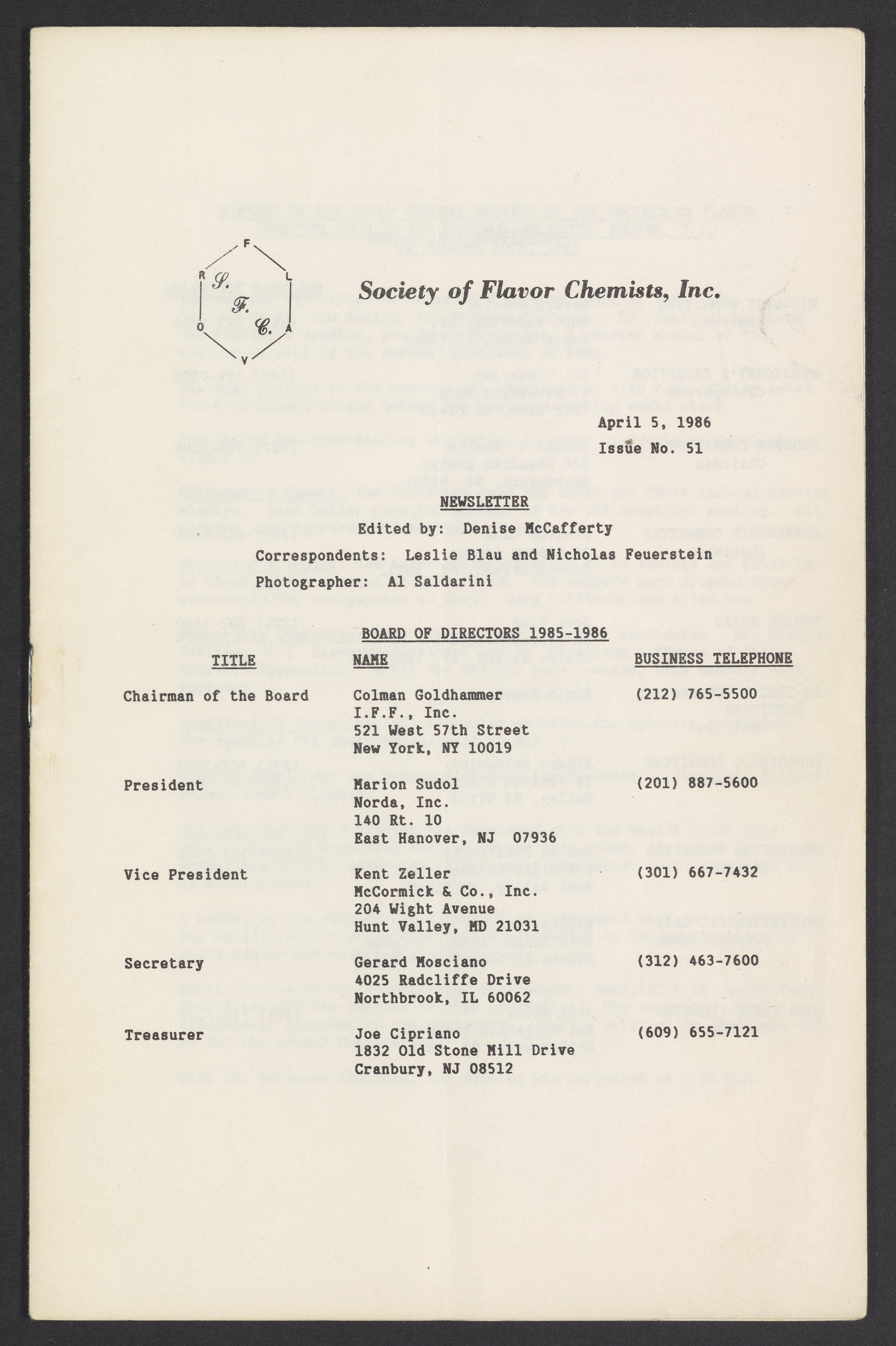 Society of Flavor Chemists. “Society of Flavor Chemists Newsletter, April 1986,” April 5, 1986. Society of Flavor Chemists Newsletters , Box 1, Folder 1. Science History Institute. Philadelphia. https://digital.sciencehistory.org/works/eoirafs.