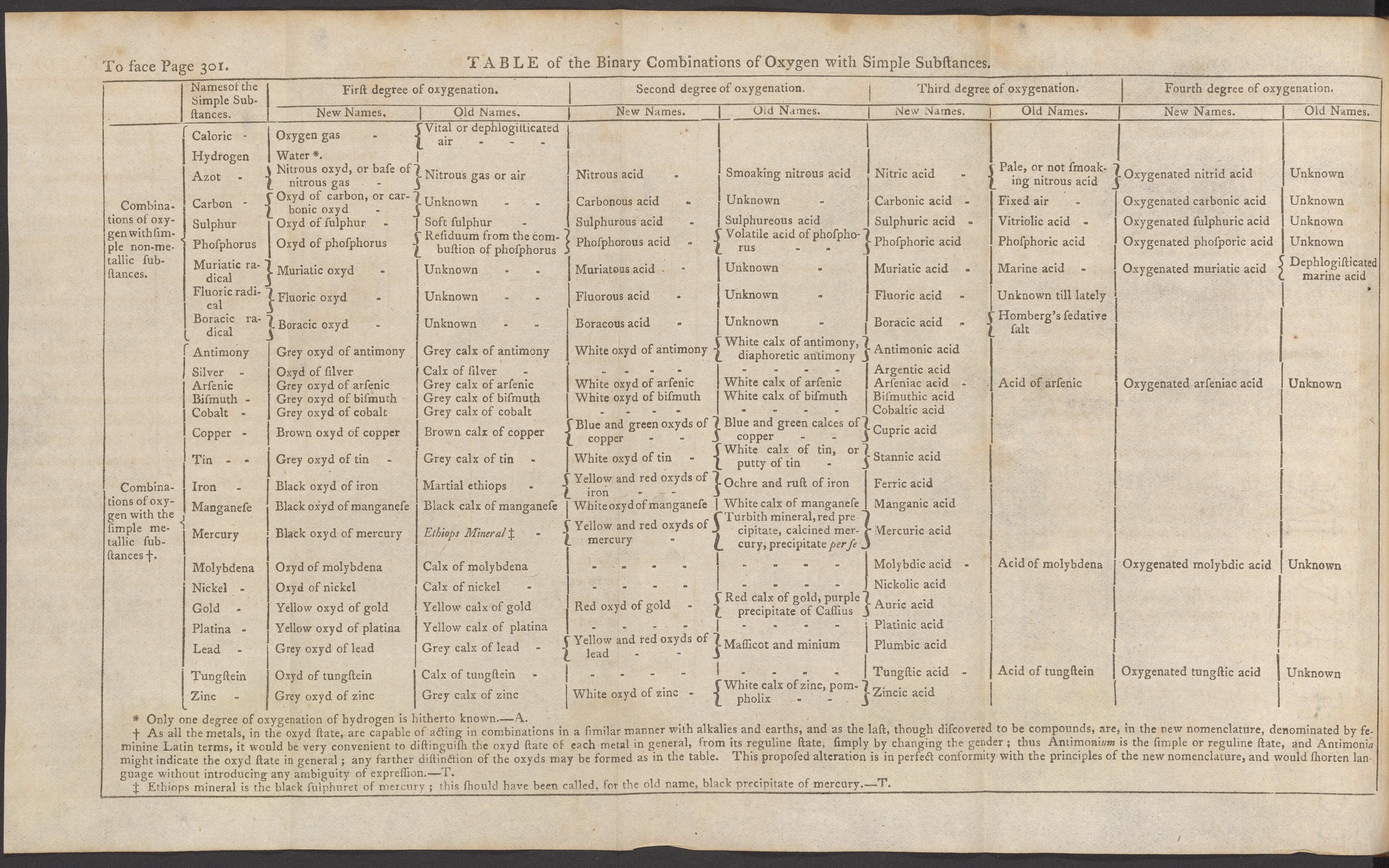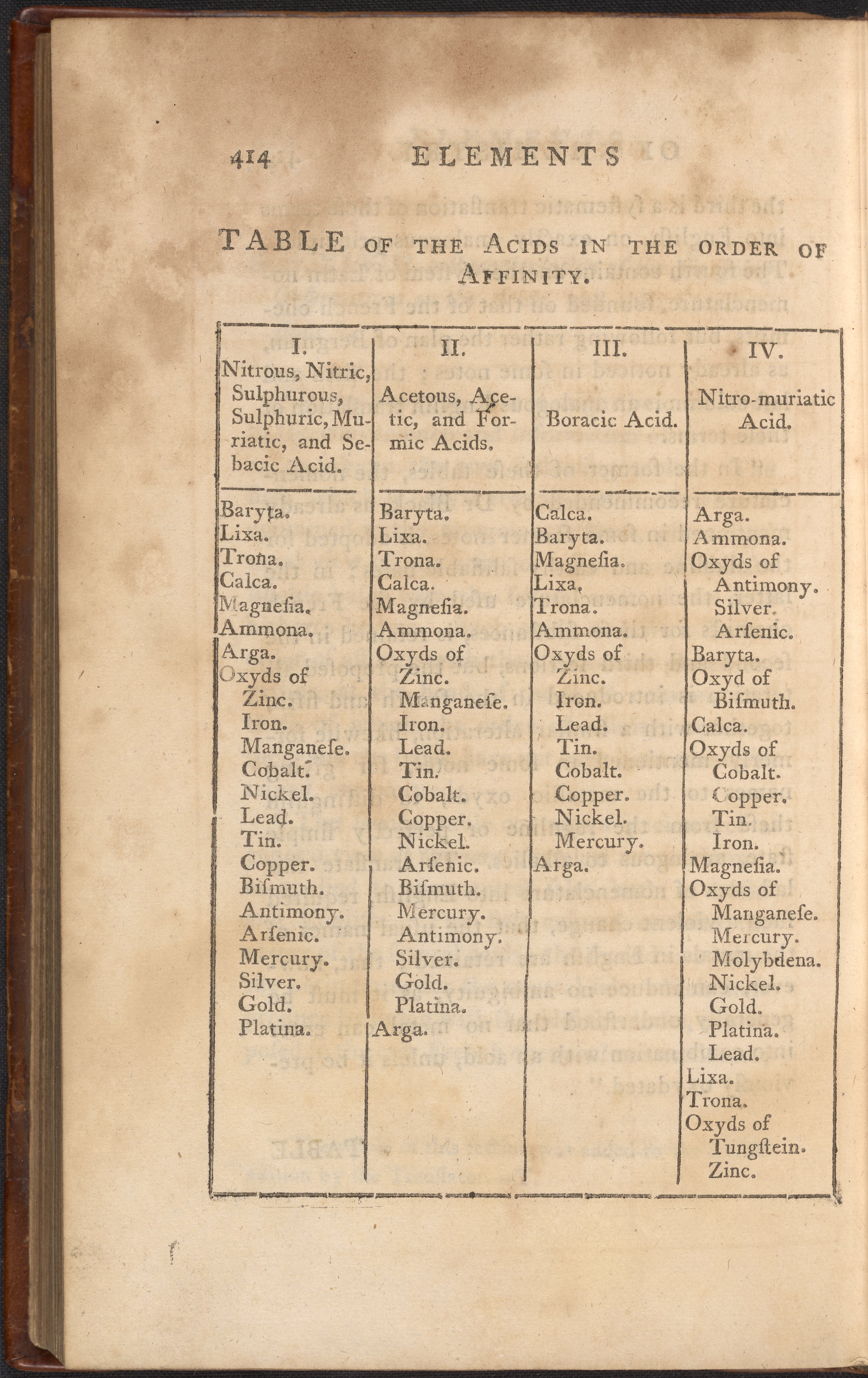 Lavoisier, Antoine Laurent. Elements of Chemistry : in a New Systematic Order, Containing All the Modern Discoveries Volume 1. Edinburgh, Scotland: William Creech, 1802. https://digital.sciencehistory.org/works/eqz1y6v.