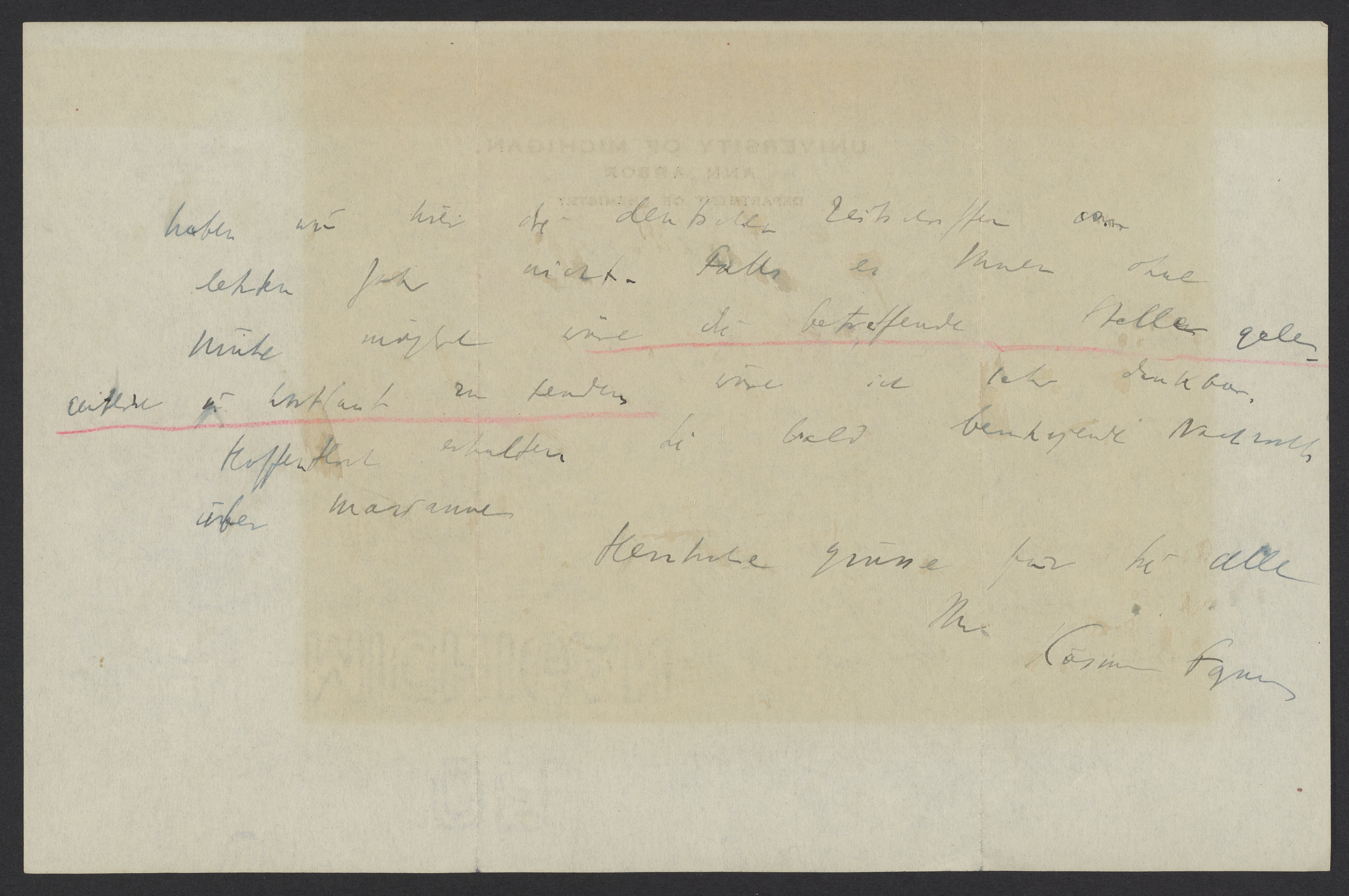 haben wir hier die deutschen Zeitschriften vom letzten Jahr nicht. Falls es Ihnen ohne Mühe möglich wäre, die betreffende Quellenangabe u. Wortlaut zu senden, wäre ich sehr dankbar.