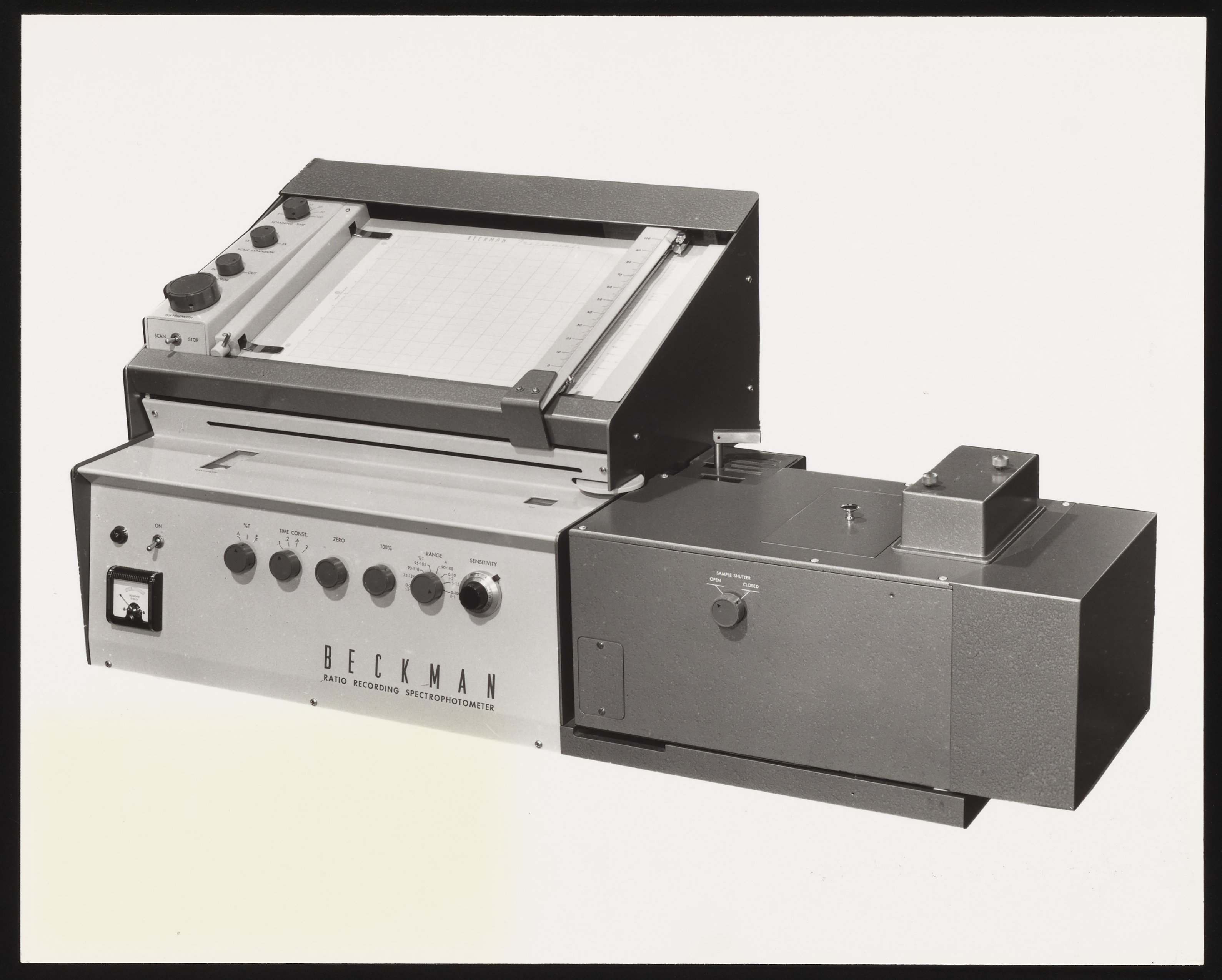 “Beckman Ratio Recording Spectrophotometer,” 1955. Beckman Historical Collection, Box 55, Folder 68. Science History Institute. Philadelphia. https://digital.sciencehistory.org/works/f1881k92v.