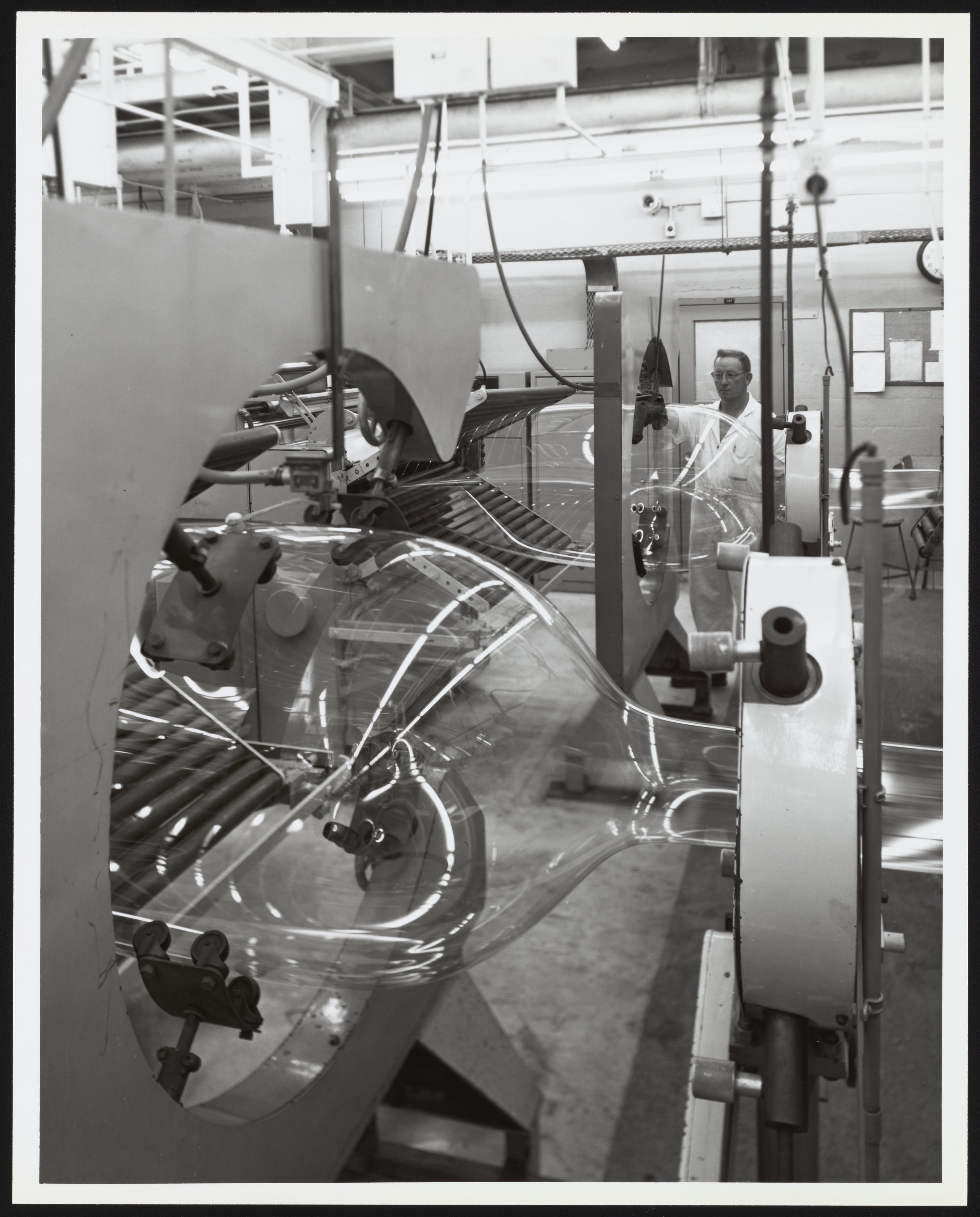 Dow Chemical Company. “Extrusion of Saran Bubbles at Dow Chemical Company,” 1965. Dow Chemical Company Historical Image Collection, Box 10, Folder Plants--Saran Bubble. Science History Institute. Philadelphia. https://digital.sciencehistory.org/works/f1881n04n.