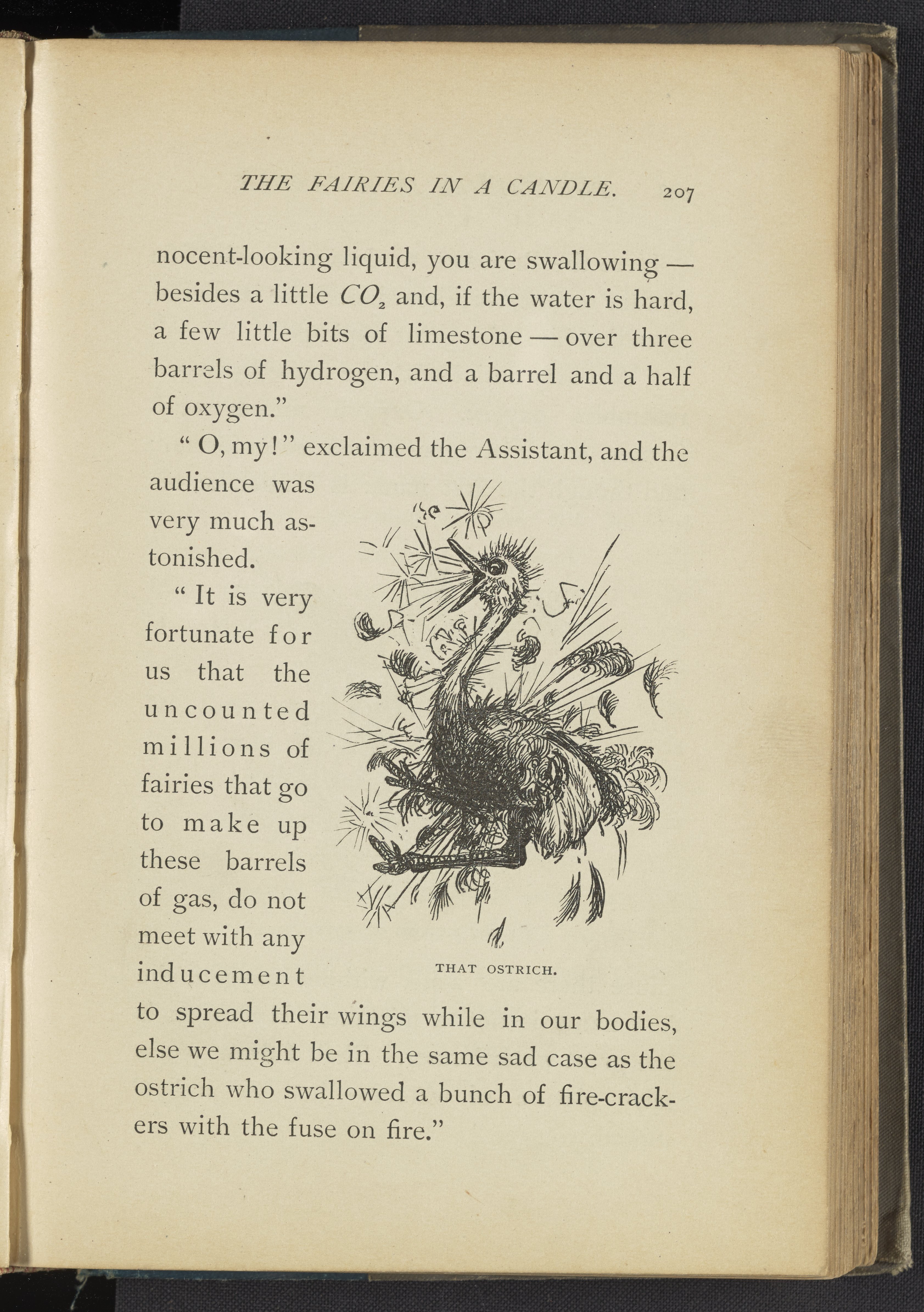Meyer, Lucy Rider. “That Ostrich.” Real Fairy Folks, or, Fairy Land of Chemistry: Explorations in the World of Atoms. Boston, Massachusetts: Lothrop Publishing Company, 1887. https://digital.sciencehistory.org/works/f4752h270.