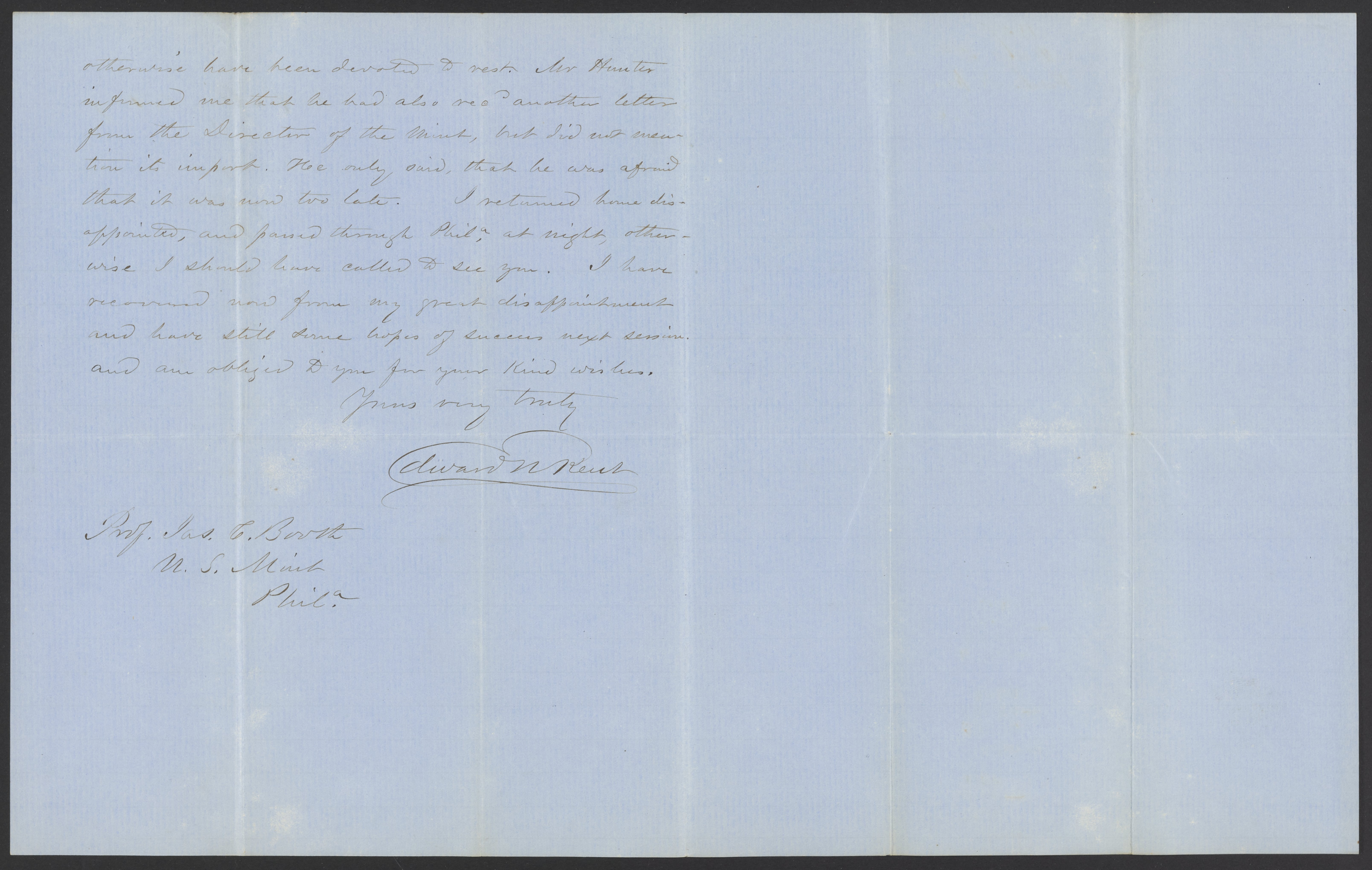 Kent, Edward. “Letter from Edward N. Kent to James Curtis Booth, May 5, 1857,” May 5, 1857. Papers of James Curtis Booth, Box 1, Folder 9. Science History Institute. Philadelphia. https://digital.sciencehistory.org/works/f6wqk3p.