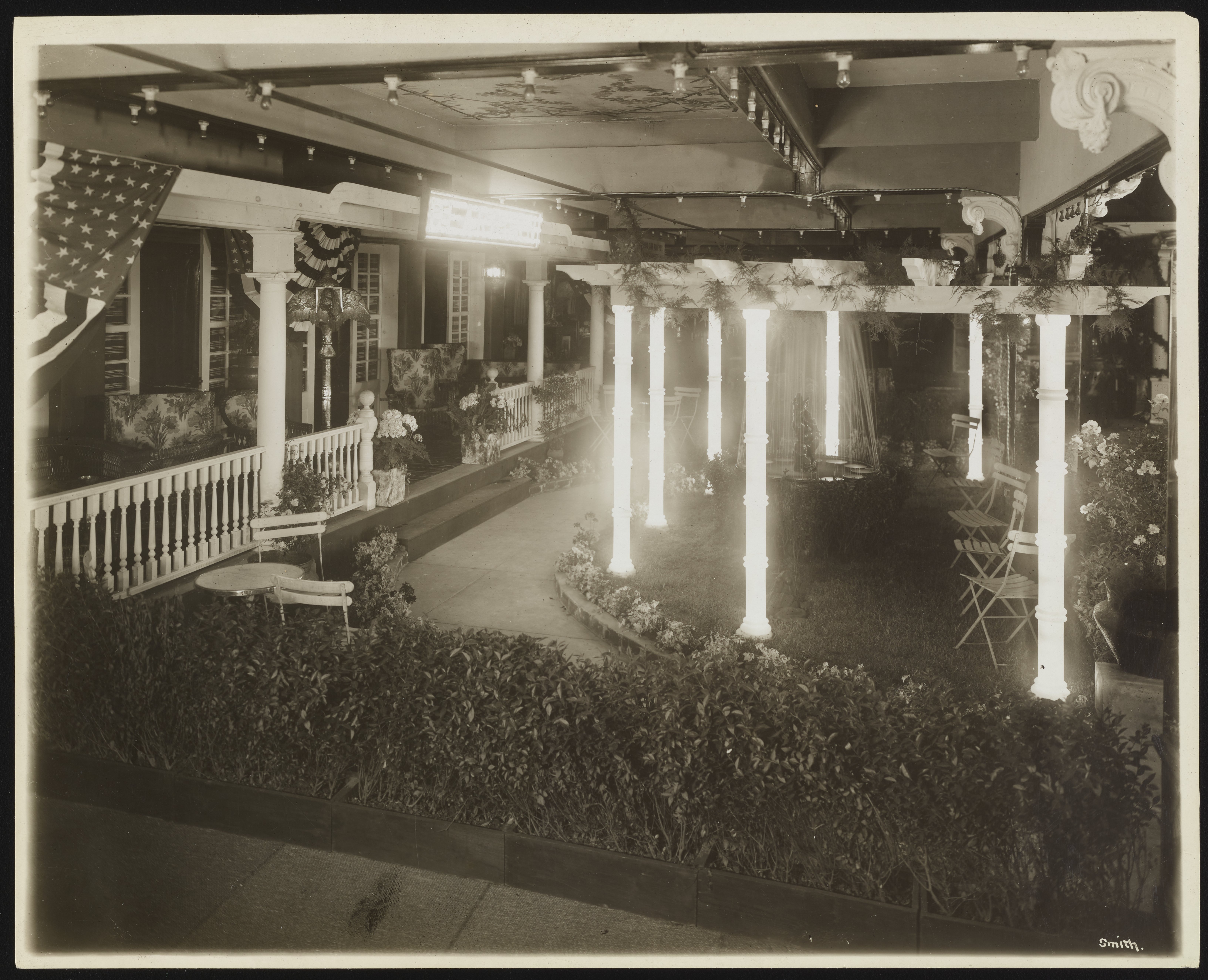 General view of a portion of the Dearborn Drug and Chemical Works hospitality suite located at Young's Million Dollar Pier in Atlantic City, New Jersey. Dearborn maintained a permanent hospitality suite at the pier to market the company's products and services to railroad executives who commonly attended Master Car Builders' and Master Mechanics' Conventions. Founded in 1887, the Dearborn Drug and Chemical Works (later Dearborn Chemical Company) was a corporate ancestor of BetzDearborn, Incorporated best known for manufacturing water treatment chemicals for use in boilers, cooling towers, and steam locomotives.