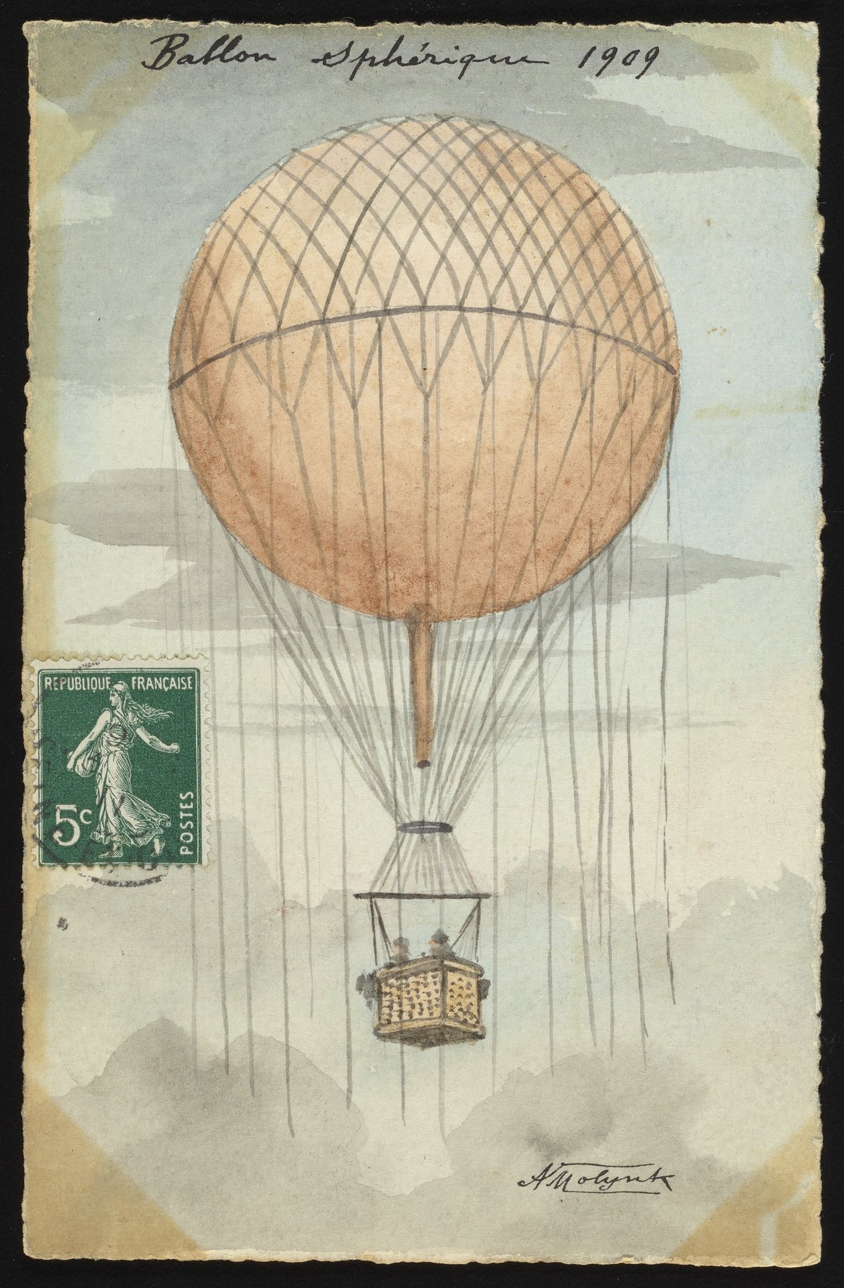 Molynk, A. “Ballon Sphérique.” Watercolor (paint), 1909. Donald F. Othmer Papers, Box 287. Science History Institute. Philadelphia. https://digital.sciencehistory.org/works/f7623d65n.
