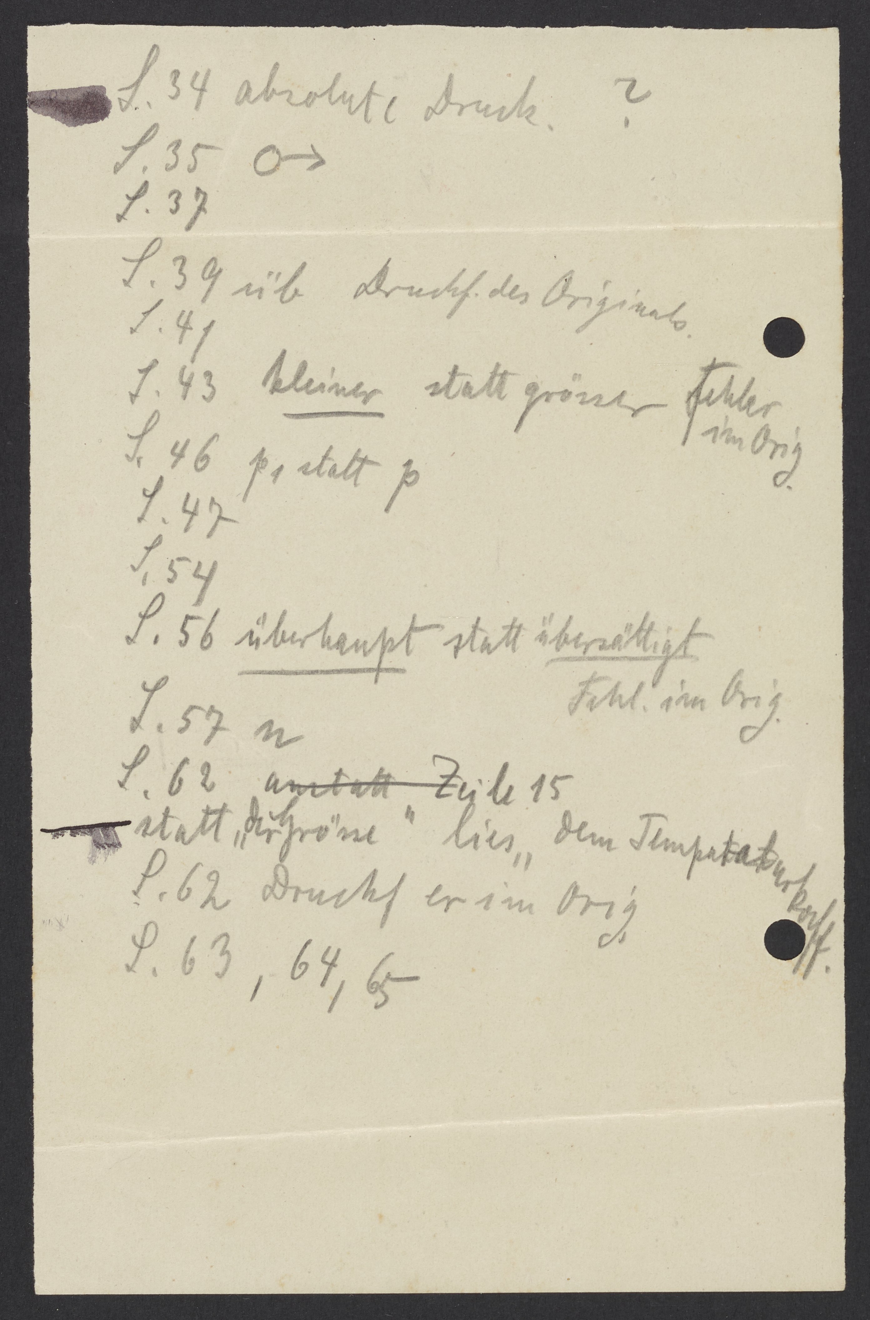 Scientific Notes from Jacobus van't Hoff sent to Georg Bredig