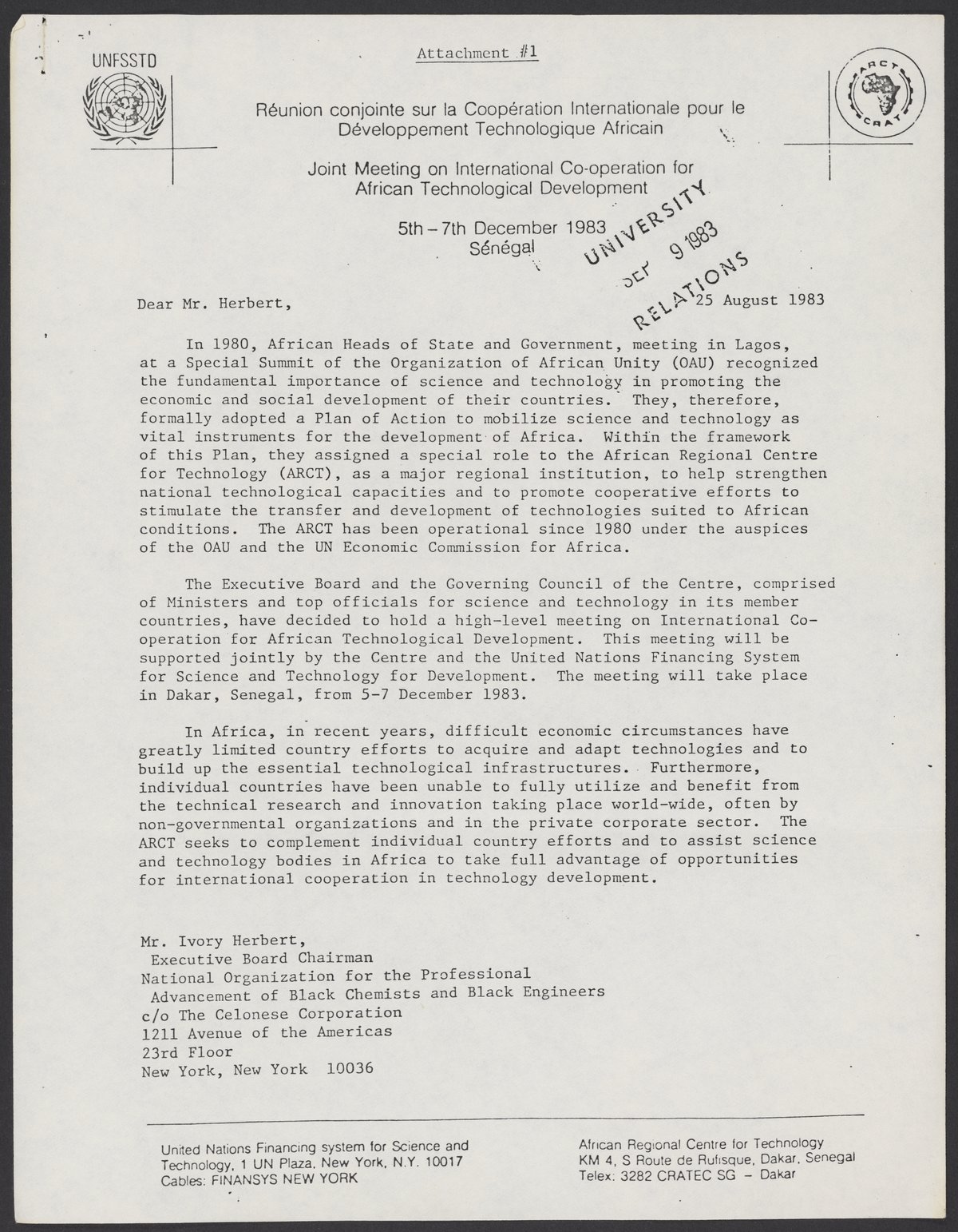 Letter to Ivory Herbert, August 25, 1983