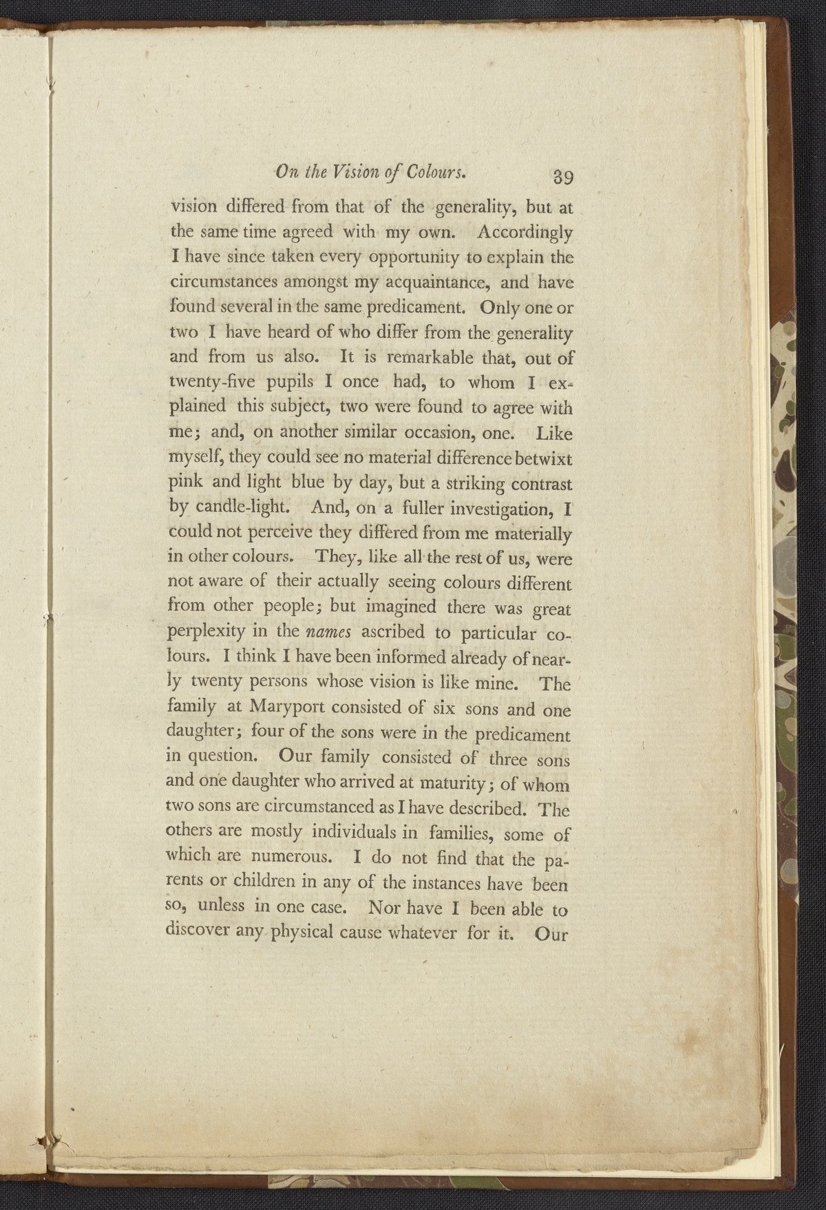 Small JPG1200 x 1834px — 423 KBLarge JPG2880 x 4401px — 2.6 MBFull-sized JPG3968 x 6064px — 4.7 MBOriginal fileTIFF — 3968 x 6064px — 68.9 MBAuthor John Dalton outlines his own red-green color blindness discovered through botanical studies of flower hues. Blank endpapers omitted during digitization.