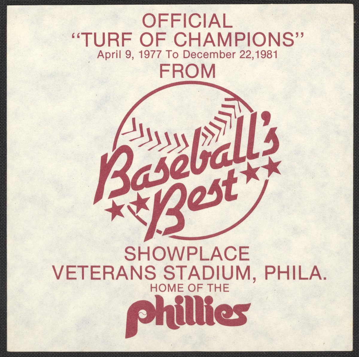 Small JPG1200 x 946px — 133 KBLarge JPG2880 x 2269px — 642 KBFull-sized JPG4778 x 3765px — 1.5 MBOriginal fileTIFF — 4778 x 3765px — 51.5 MBA square sample of AstroTurf® artificial grass from Veterans Stadium in Philadelphia, Pennsylvania. The stadium hosted the Philadelphia Phillies of Major League Baseball (MLB) from 1971 to 2003 and the Philadelphia Eagles of the National Football League (NFL) from 1971 to 2002.
