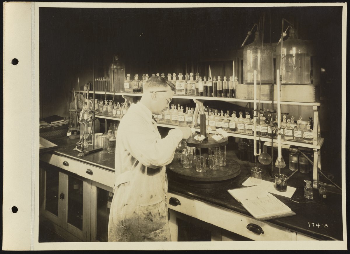 Anton H.R. Noreen conducting coal analysis at Dearborn laboratory facility