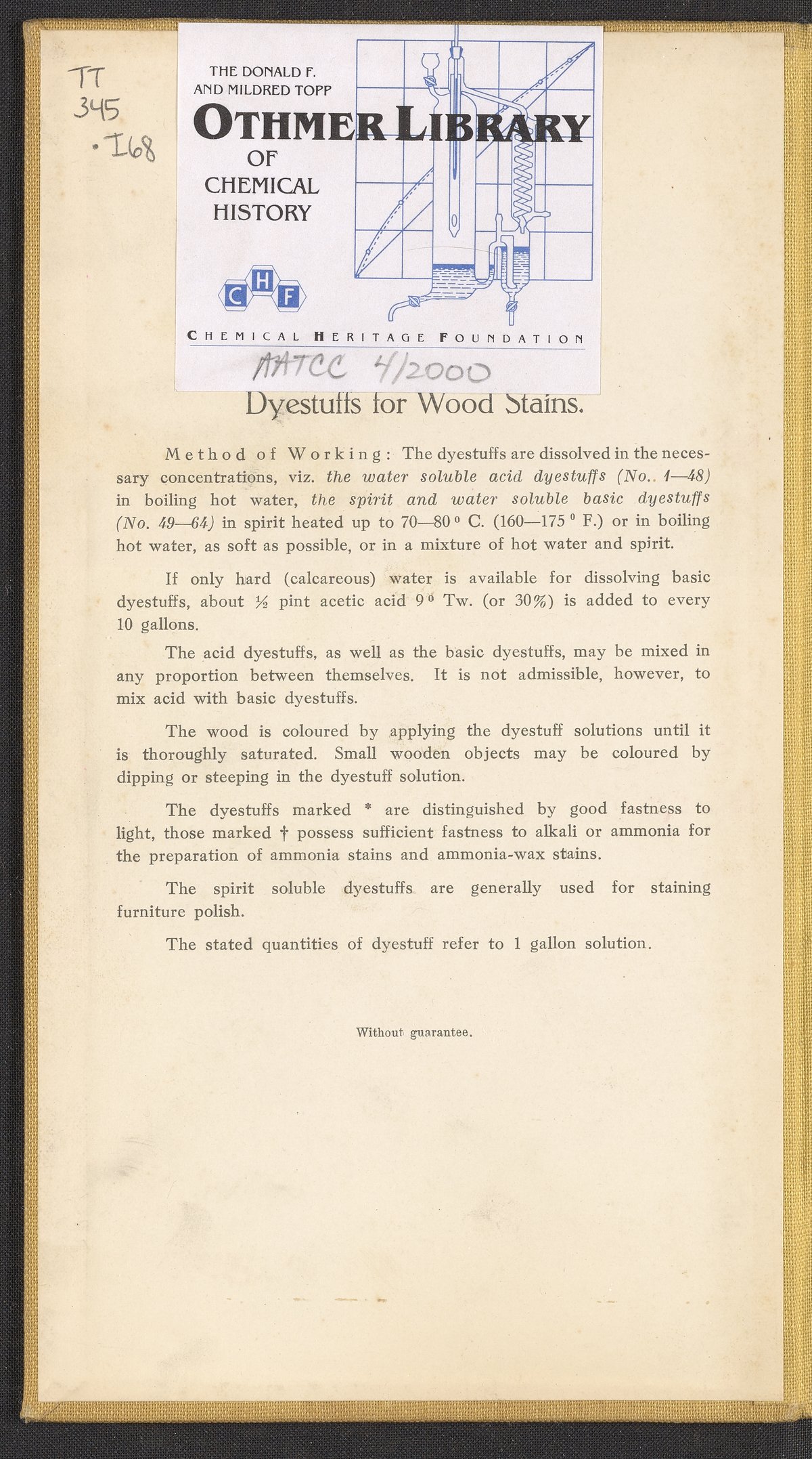 General Dyestuff Corporation, and Interessengemeinschaft Farbenindustrie Aktiengesellschaft. Dyestuffs for Wood Stains, 1900–1999. https://digital.sciencehistory.org/works/fi2su8a.