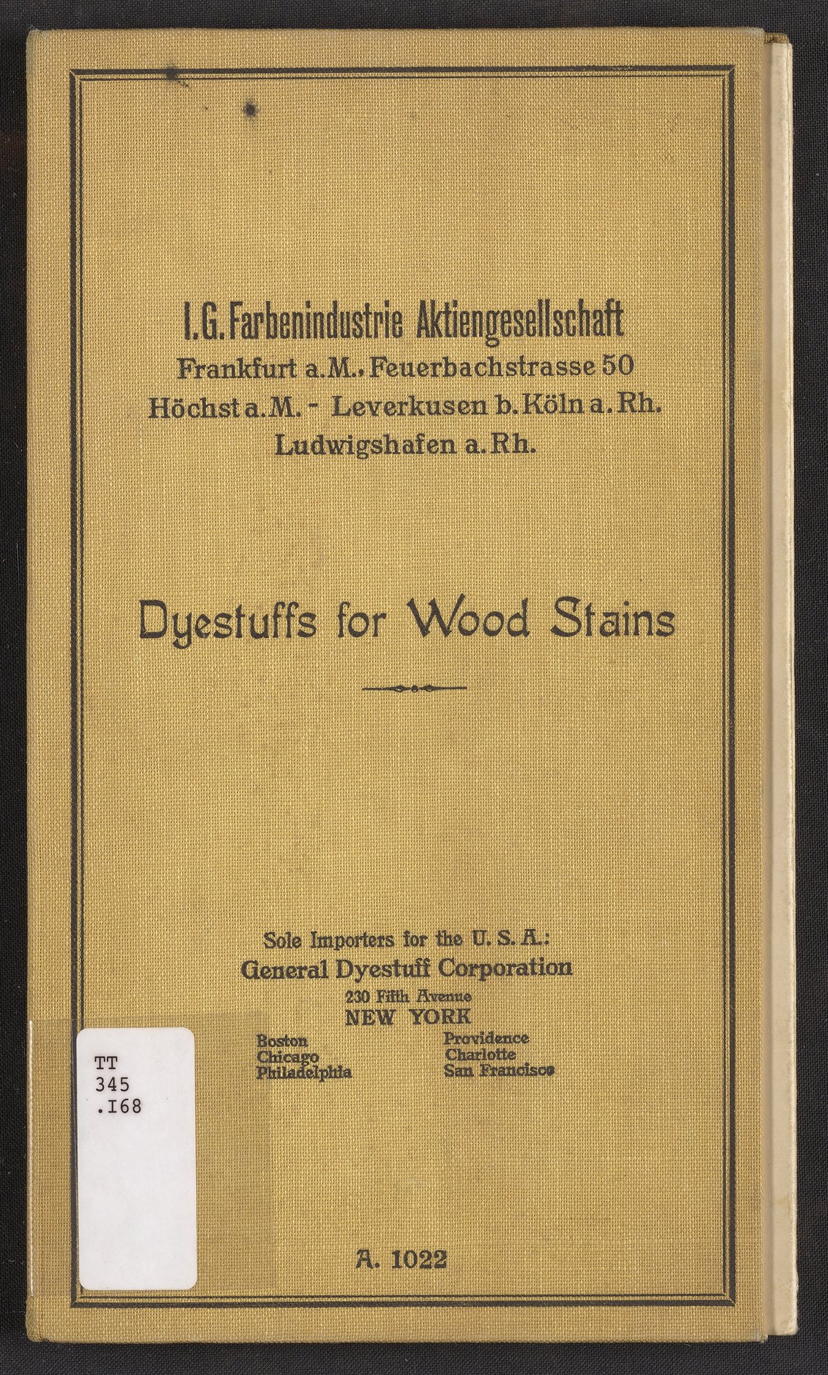 General Dyestuff Corporation, and Interessengemeinschaft Farbenindustrie Aktiengesellschaft. Dyestuffs for Wood Stains, 1900–1999. https://digital.sciencehistory.org/works/fi2su8a.